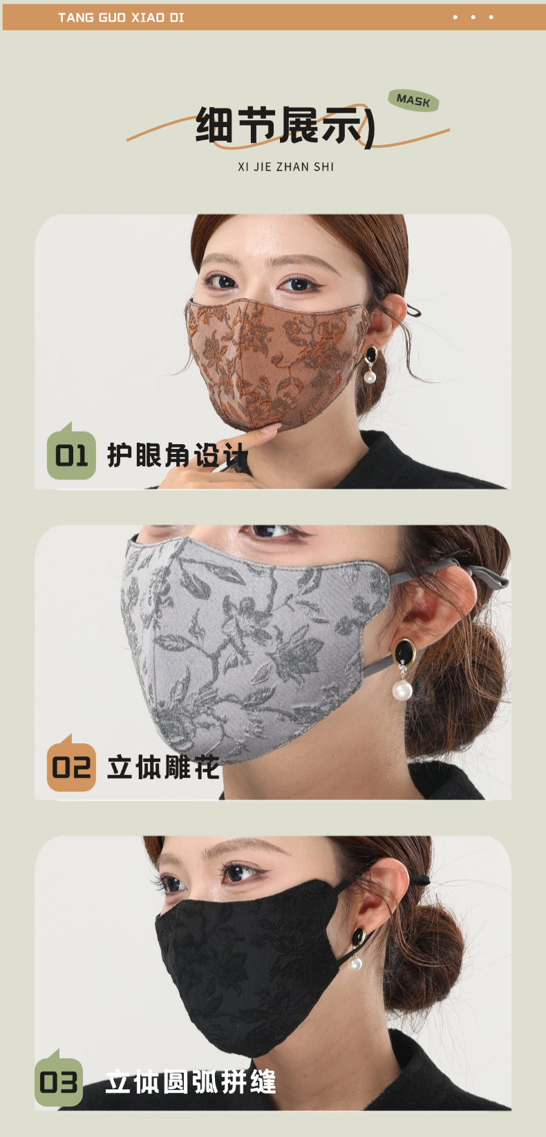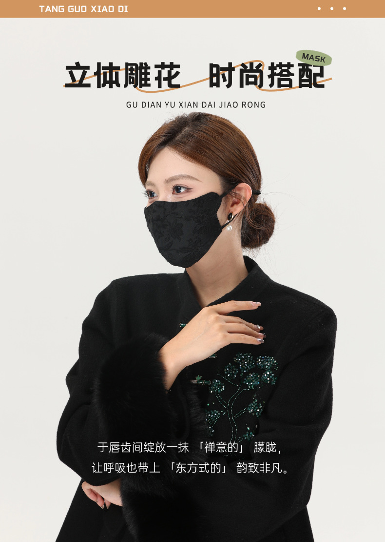 新しい中国風刺繍マスク宮殿風3Dジャカードクラフト日焼け止め防塵防曇フェイスマスク