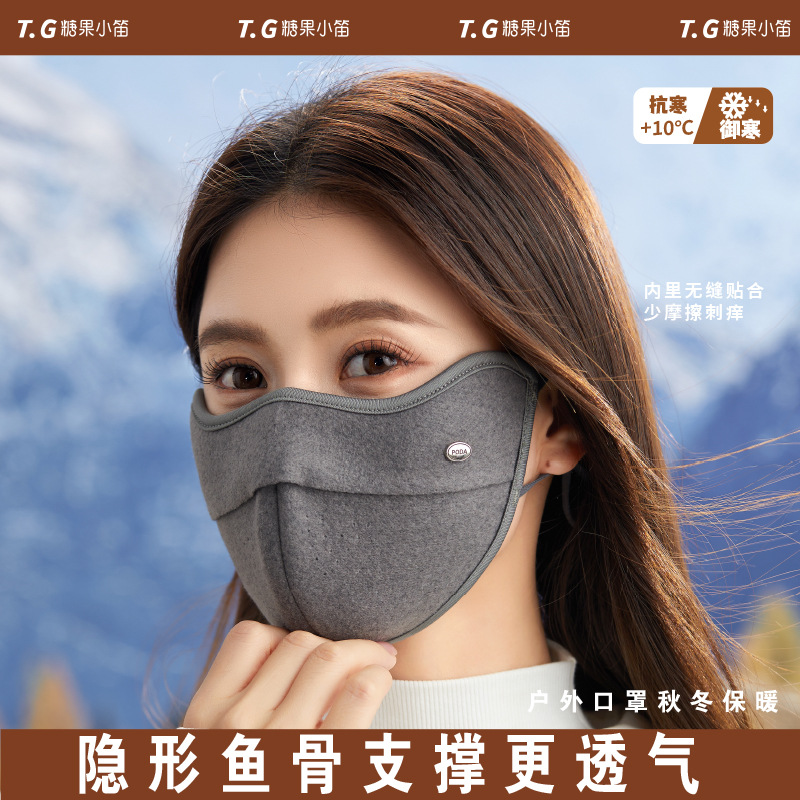 2025秋冬新款保暖口罩女骑行防寒透气澳绒高颜值时尚百搭防紫外线