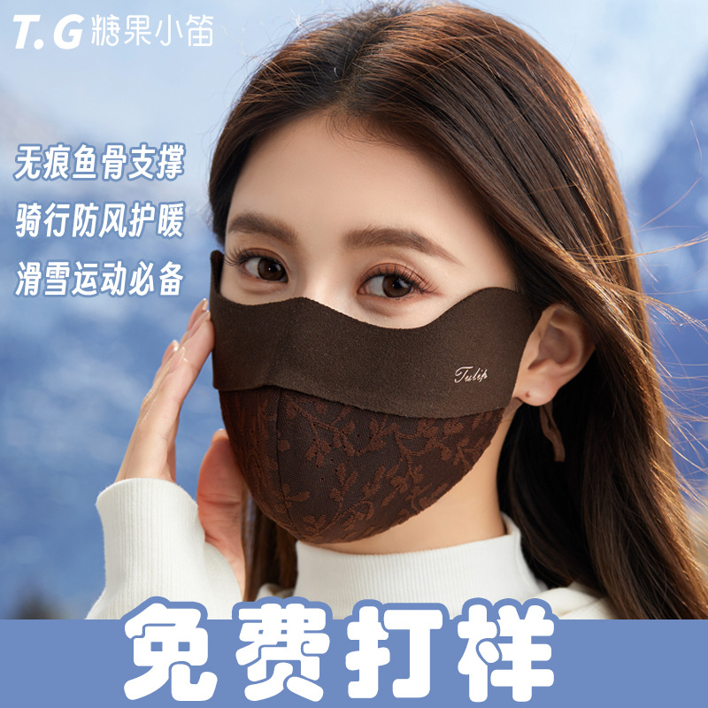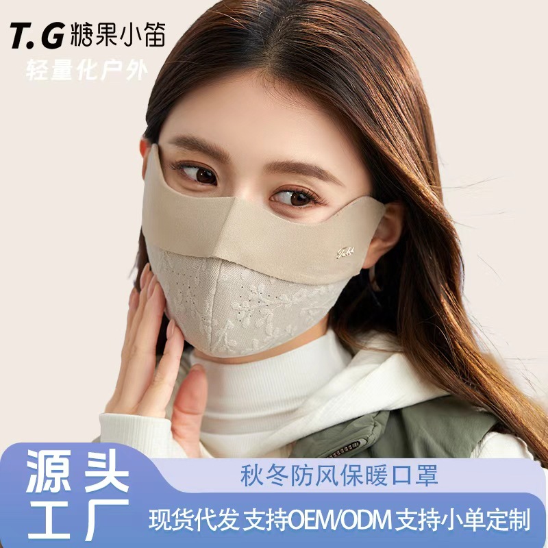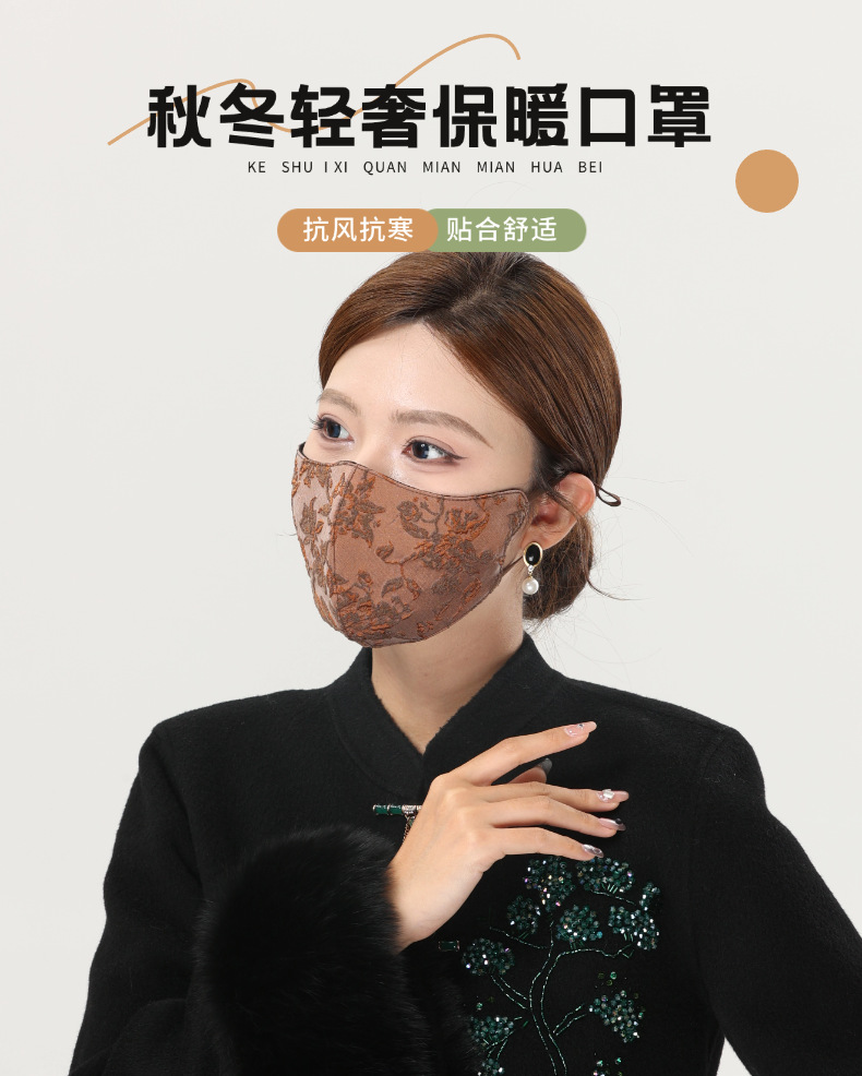 秋冬の新作暖かいマスク、女性用レース刺繍、防風防寒、立体通気性、レトロで豪華、高見えします。