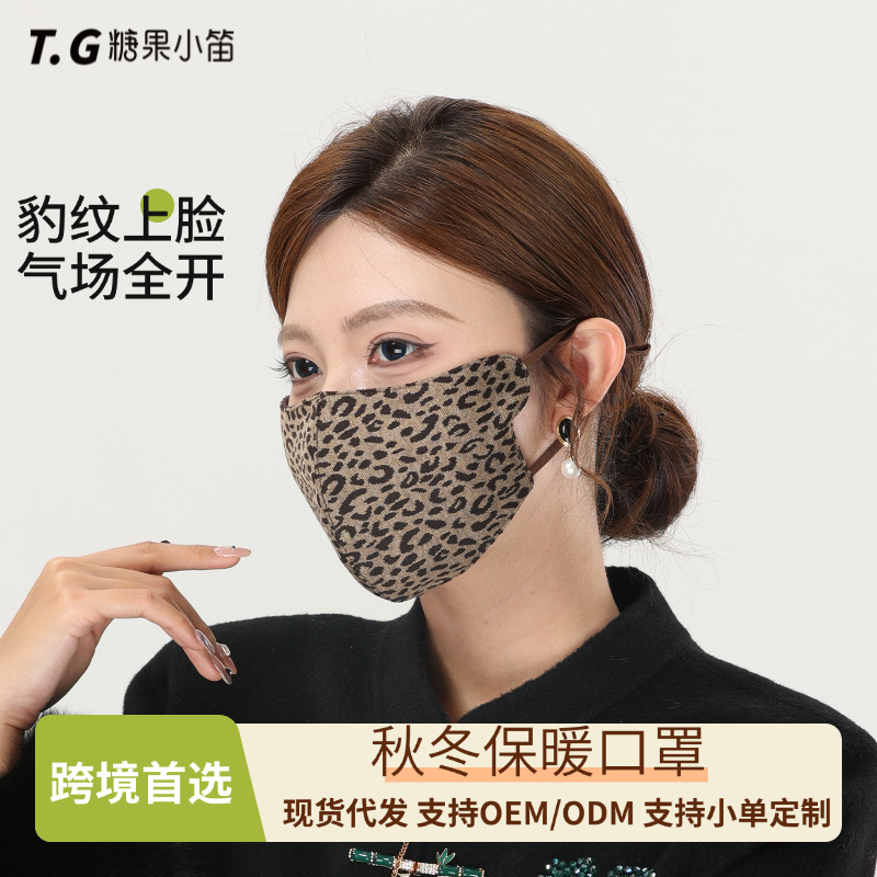 秋冬新款加厚豹纹保暖口罩立体女加厚防风防寒面罩骑行出行保神器