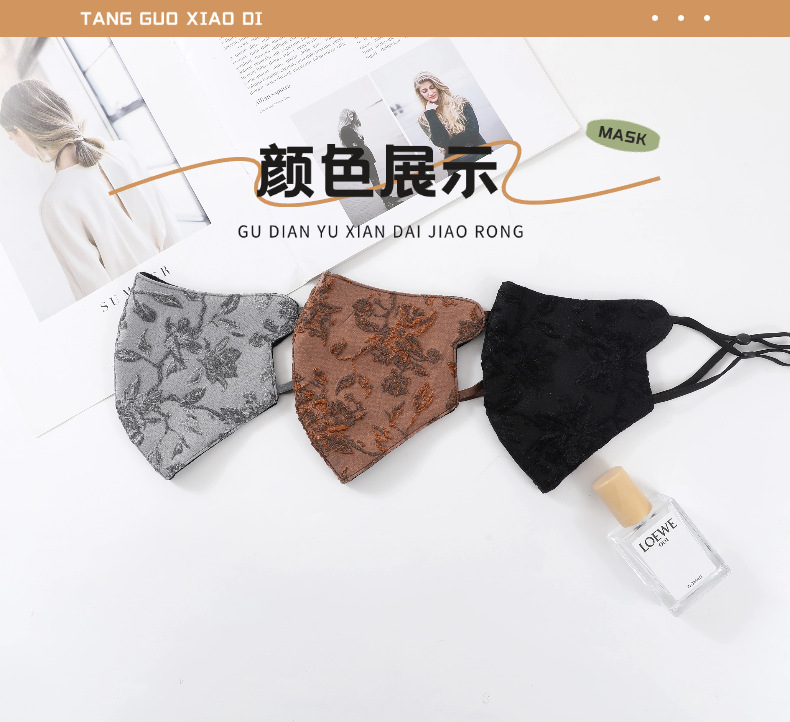 刺繍宮廷風マスク秋冬ネット赤同金女神日焼け止め3d立体女性ジャカード痩せ顔小V顔
