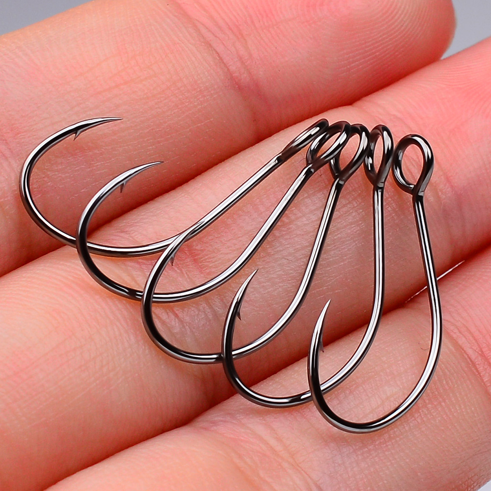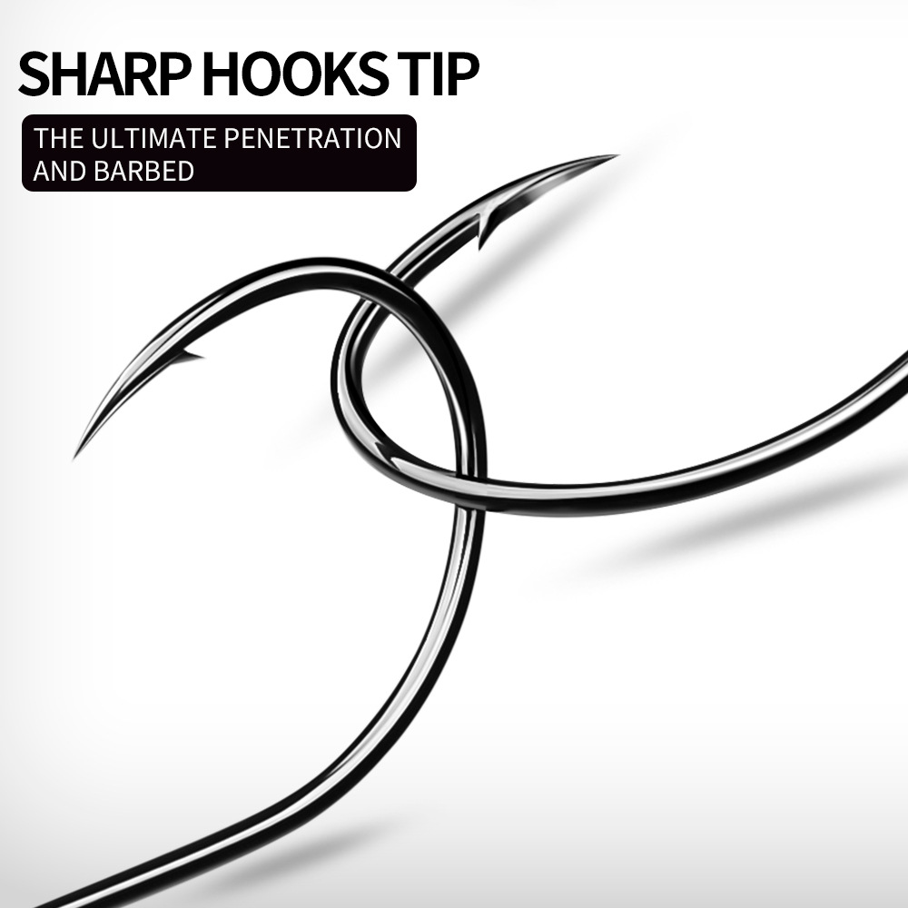 卖点:高碳钢大圈飞钓钩,最新圆尖钩尖,表面黑镍防锈处理