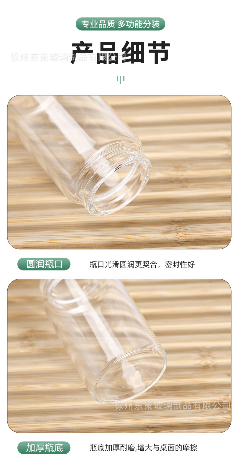 47mm卡口木塞瓶密封花茶瓶黑枸杞分装高硼硅包装瓶藏红花玻璃瓶