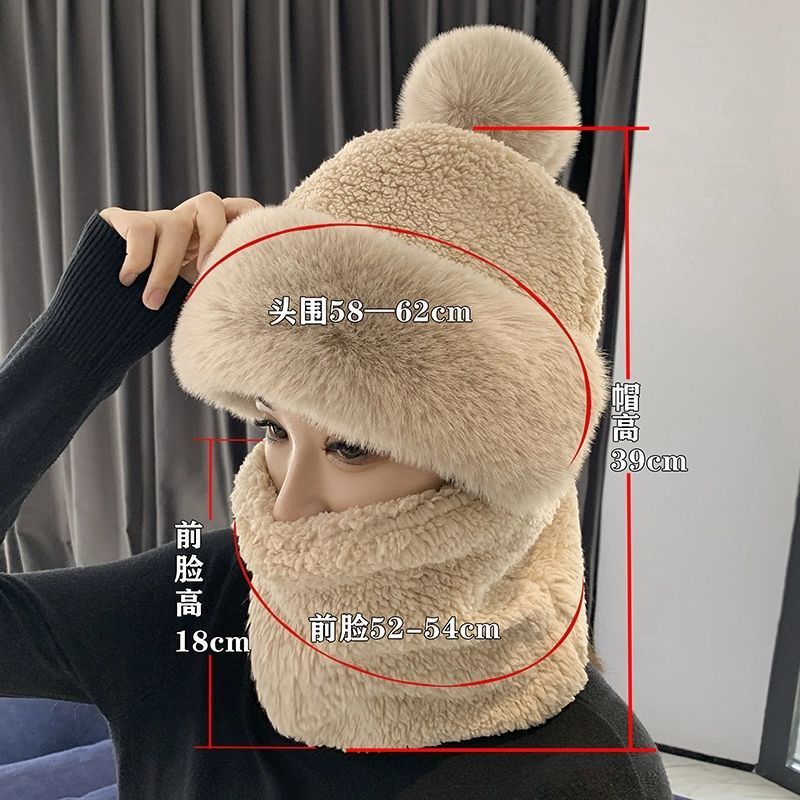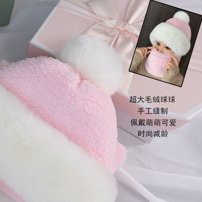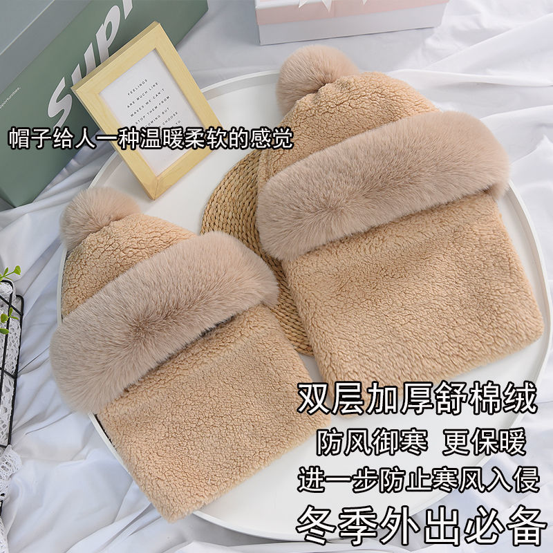 冬天防寒加绒脖套帽子两件套女士出行护耳保暖针织帽方标毛线帽冬