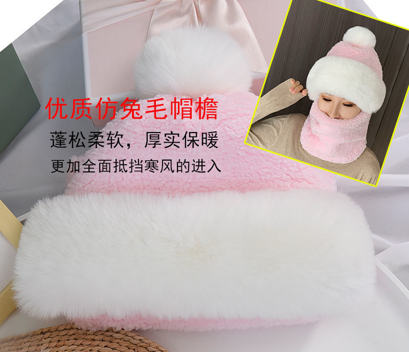 2025新款加绒加厚帽子围脖一体女冬骑车防风防寒电动车保暖套头帽