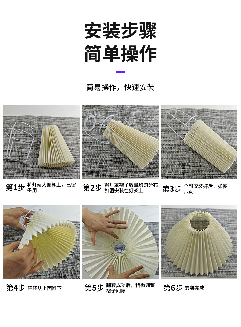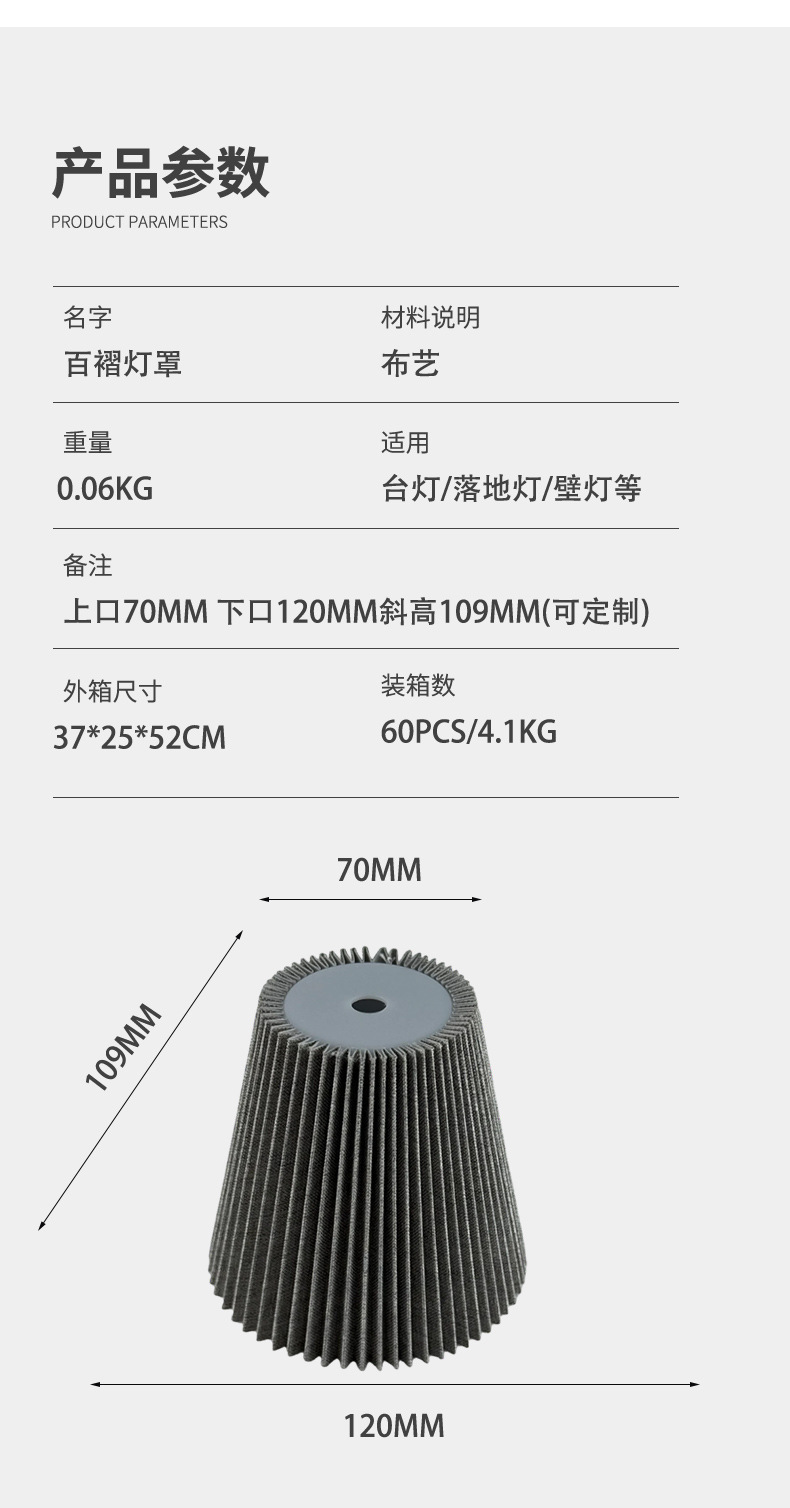 外销布艺百褶灯罩法式落地灯可拆KD褶皱灯罩印花羊皮纸PP台灯灯罩