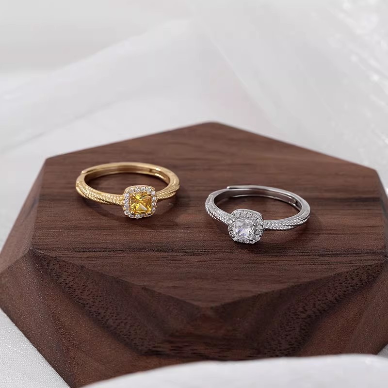 超闪方糖锆石开口戒指2025年新款轻奢名媛网红气质戒指情人节礼物