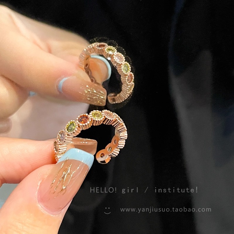 中古彩虹戒指女小众设计开口可调节指圈甜酷辣妹风饰品高级感指环