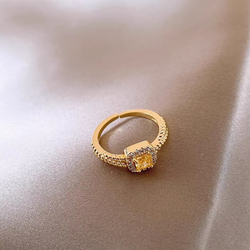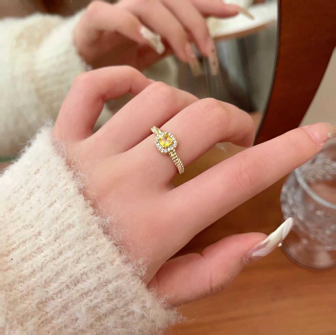 小红书爆款小方糖黄钻戒指女2025年新款小众设计轻奢高级感食指戒