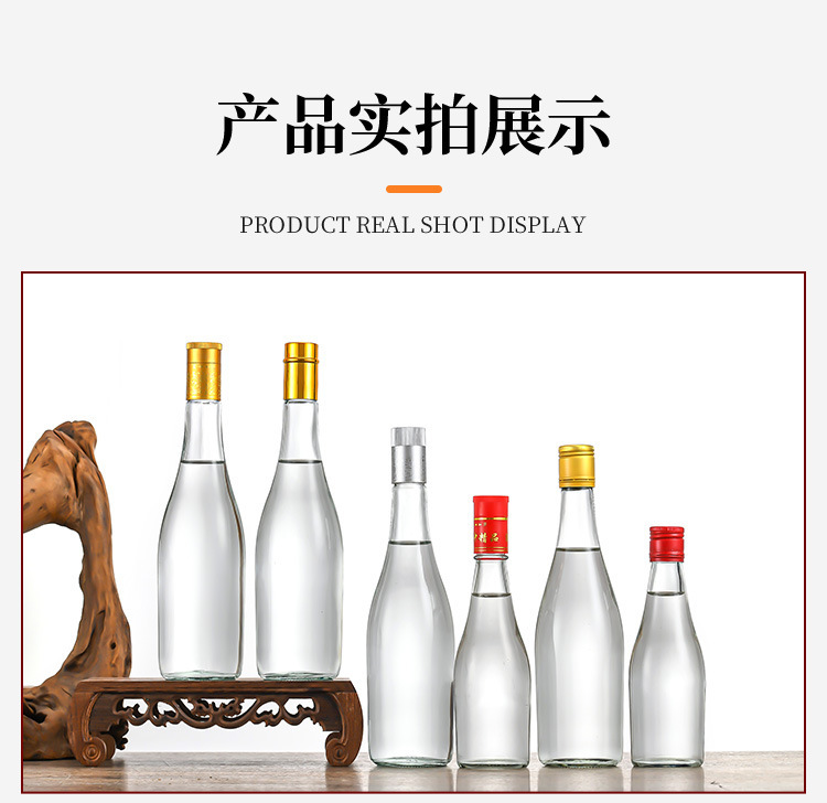 卸売り汾酒二鍋頭白瓶空瓶1斤に透明ガラス散酒蜂蜜醤油を入れて酒瓶を作る
