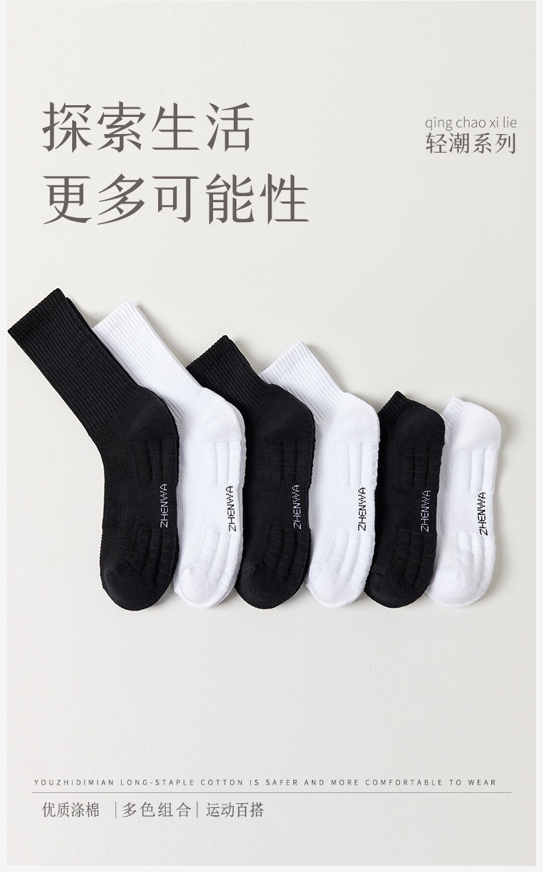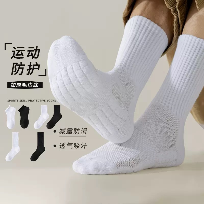 奕露跨境毛巾底毛圈运动袜子男士中短筒袜跑步篮球袜黑白长袜批发