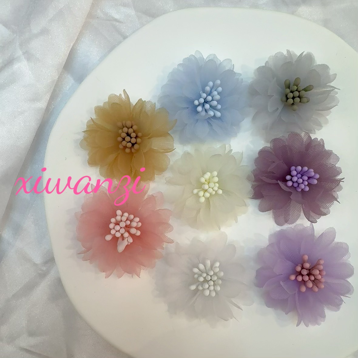 现货4cm纱花花朵头饰装饰胸花DIY手工材料服装发饰仿真花头配件