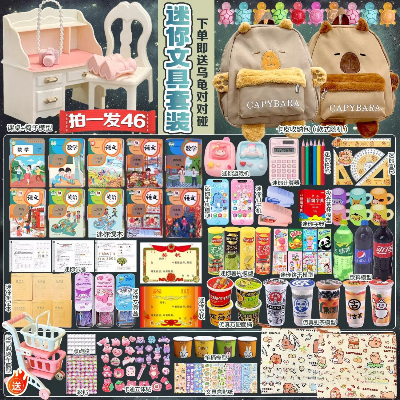 ミニチュアミニスクールバッグ女の子小さな文具セット子供の小さなバックパック教科書イン食品おもちゃ女の子のおもちゃ卸売
