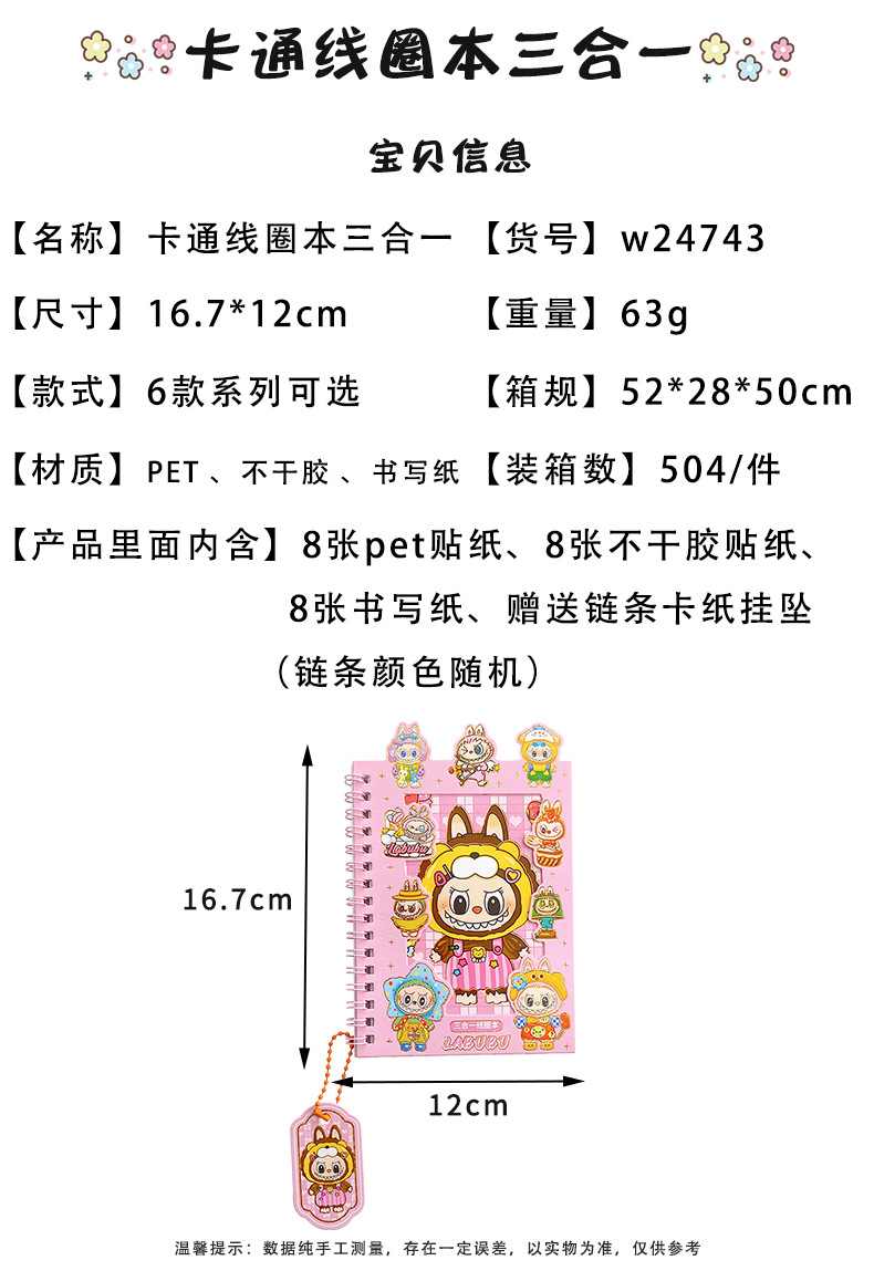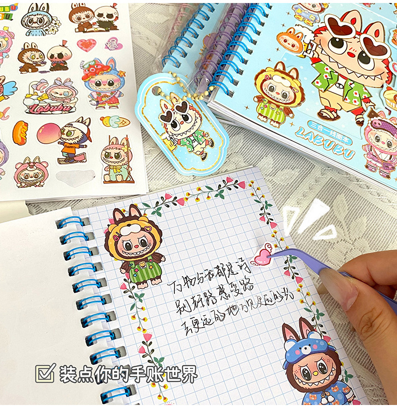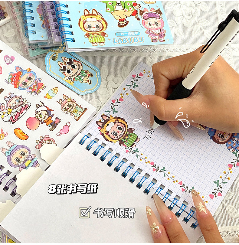 新款拉布布线圈本三合一卡通高颜值手账贴纸本小学生文具线圈本