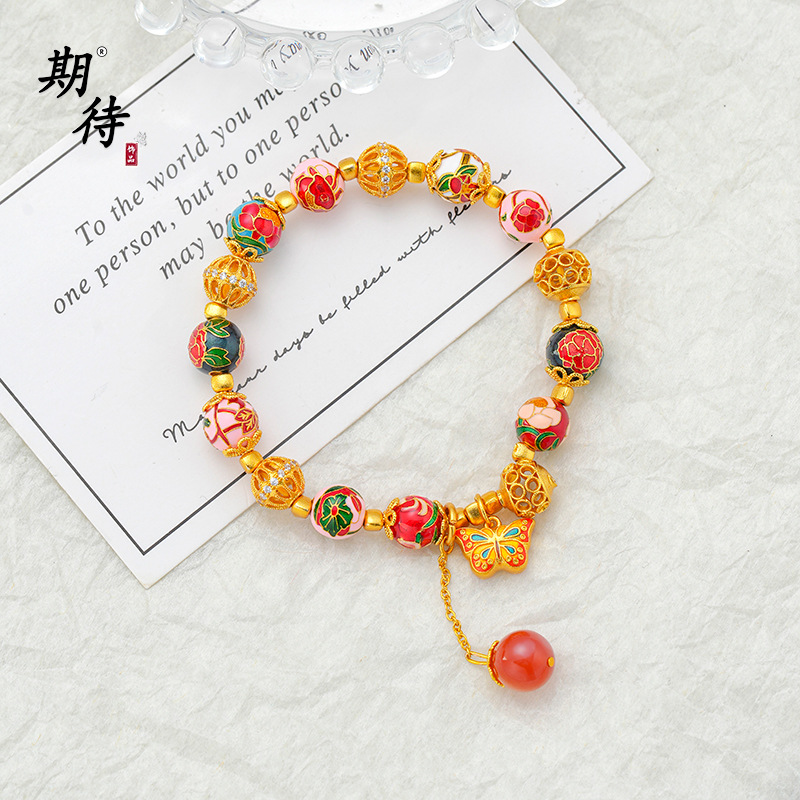 国风繁花轻奢手链女景泰蓝掐丝珐琅繁花手串心想事成串珠手链批发