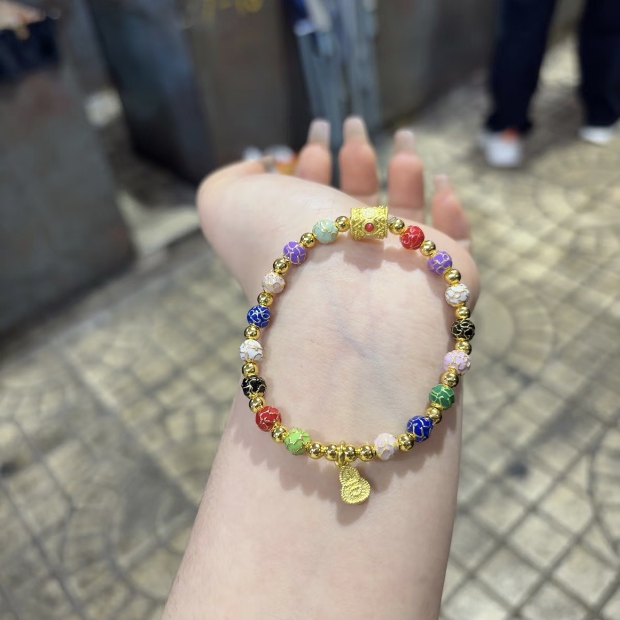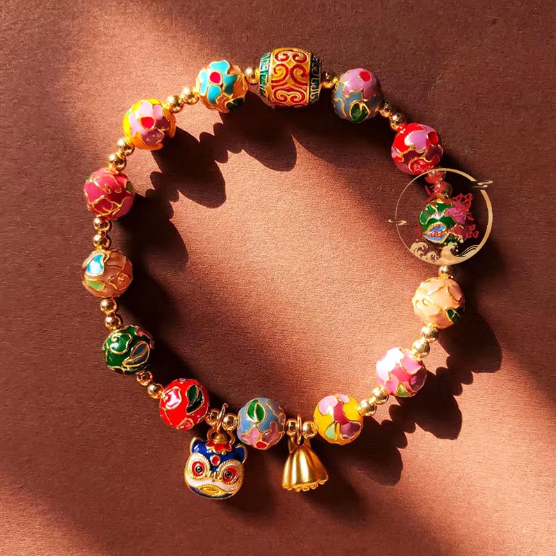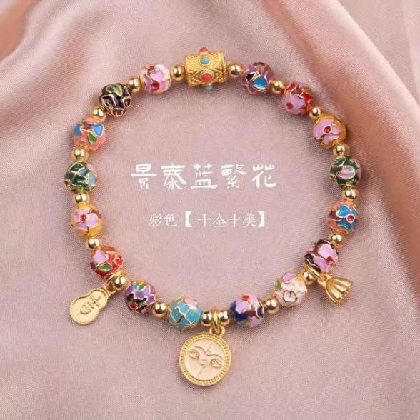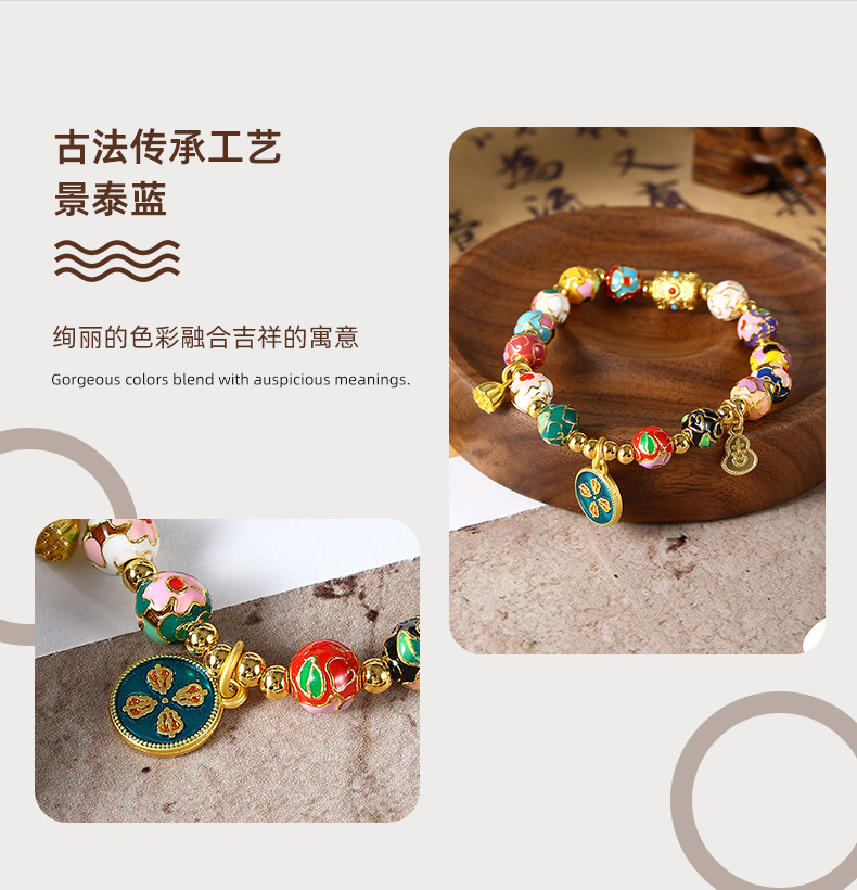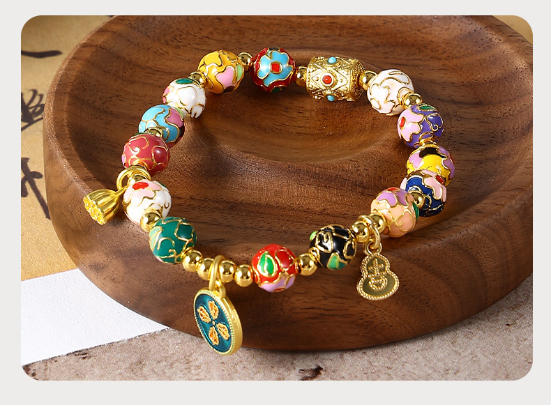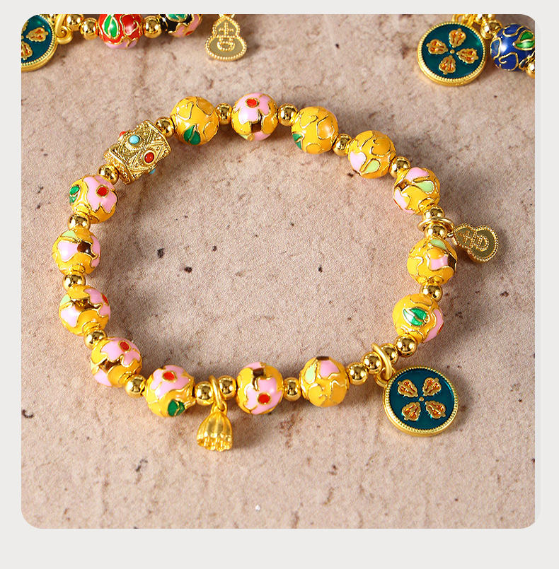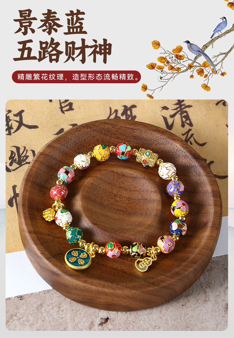 景泰蓝五路财神手串批发珐琅繁花手链女手串景区同款