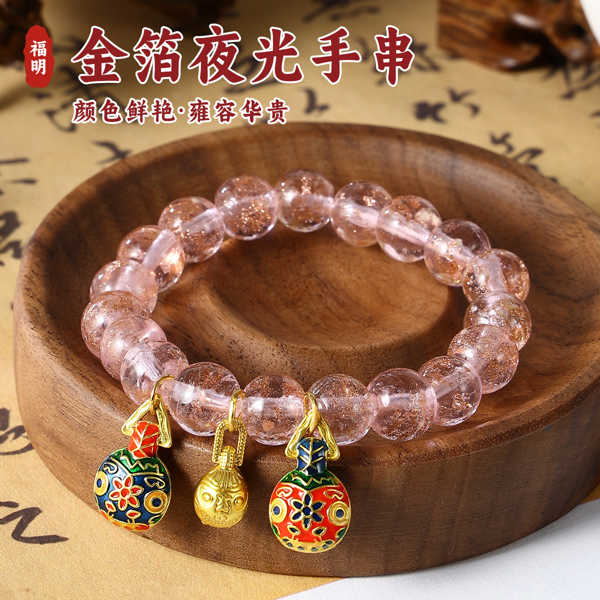 金箔夜光手串手链女香灰琉璃吞金兽景区摆摊热卖饰品新中式风
