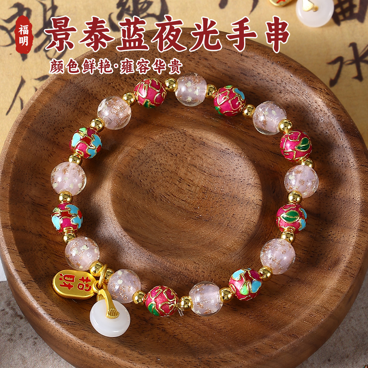 景泰蓝夜光手串女高级感掐丝珐琅繁花平安扣景区热卖饰品手串