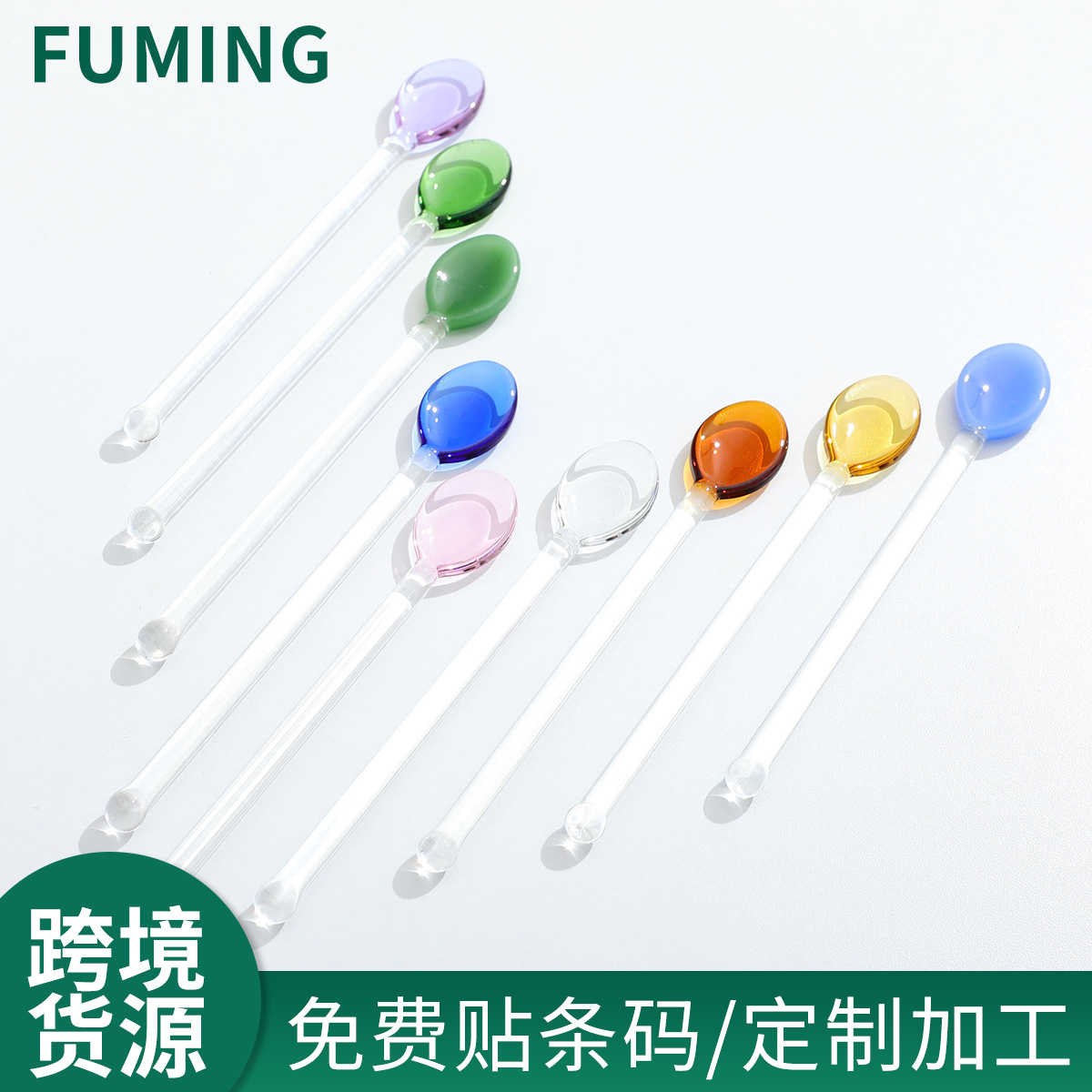 コーヒーミルクガラス撹拌棒カラフルでかわいいクリエイティブなロングハンドルジュースコーヒースプーン付き