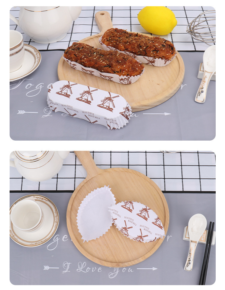 高温耐性のあるパン紙トレイ、パイナップルパン、ホットドッグ、カップケーキベース、ベーキングコーティングされた舟型大型風車紙トレイ