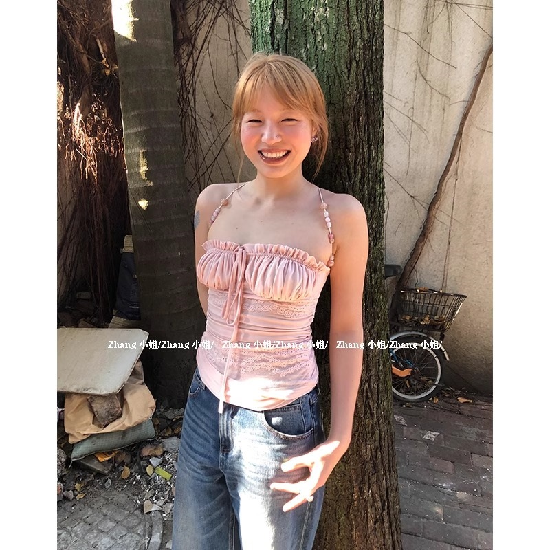 2025年夏新作 ピンクビーズ付きキャミソール おしゃれで新感覚 多彩な着こなしインスタイル デザイン感溢れる 即納