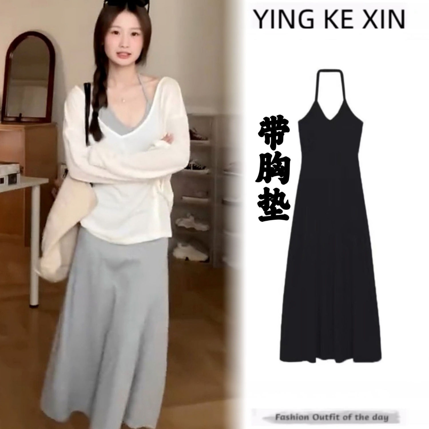 Pure Desire ホルターネックドレス レディース 早春 ニッチデザイン サスペンダースカート 小柄な人向け 胸パッド付き 着痩せAラインスカート