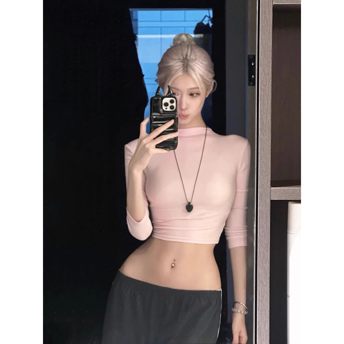 アメリカンスイートガールピンク中袖Tシャツ女性用夏2025新ファッションカジュアルドーパミンコーデインスタグラム発送