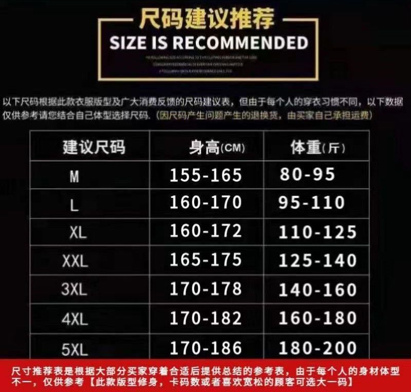 尺码 L,XL,XXL,3XL,4XL,5XL
