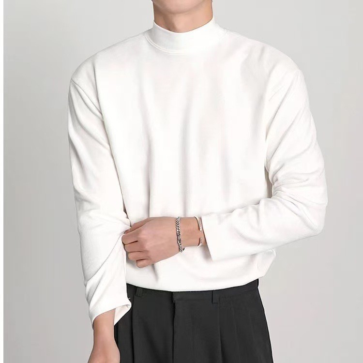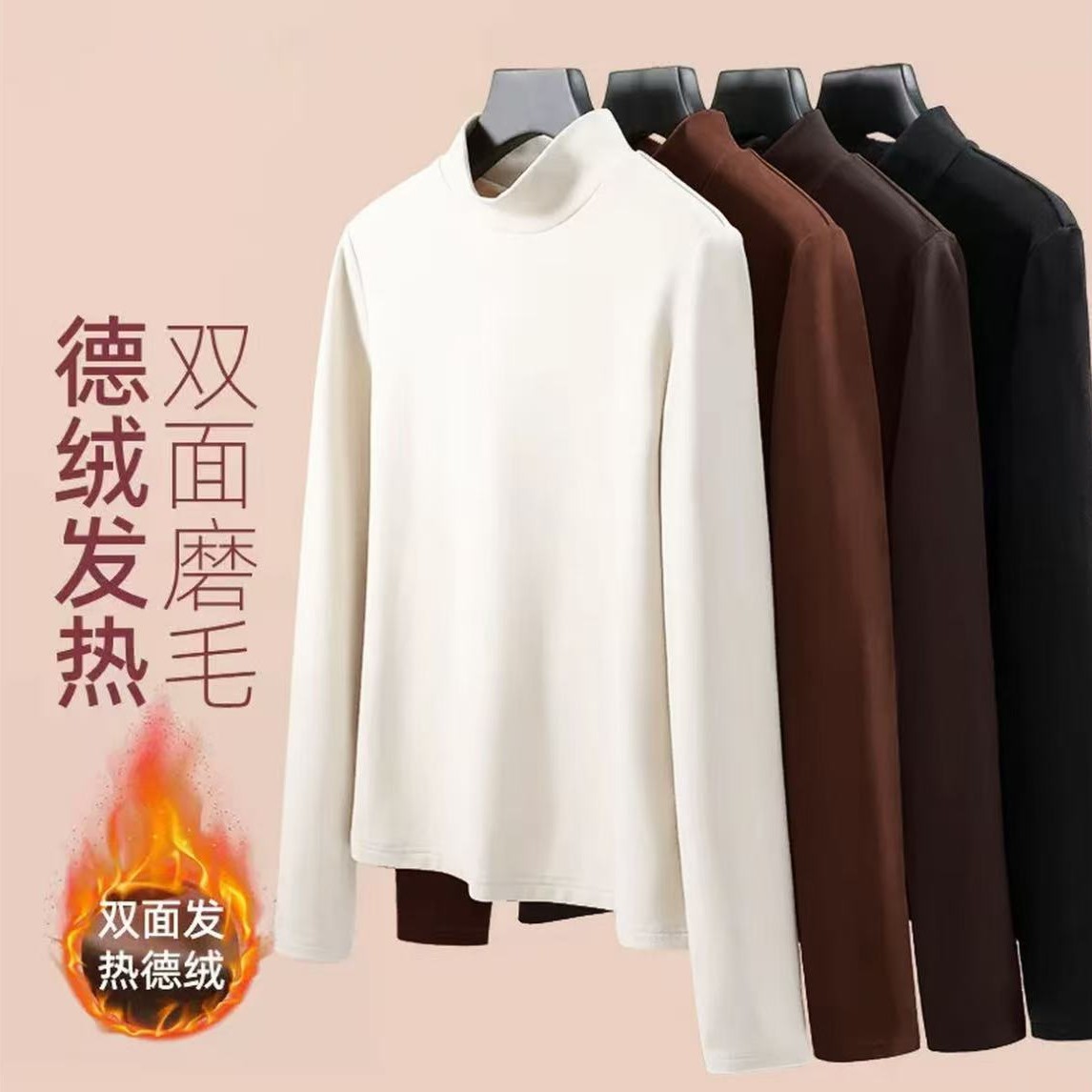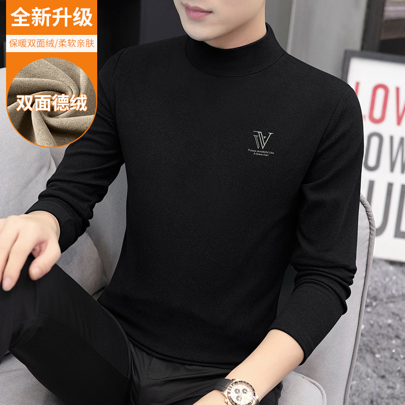秋冬季上衣半高领双面绒男士修身内搭中领加厚保暖打底衫长袖T恤