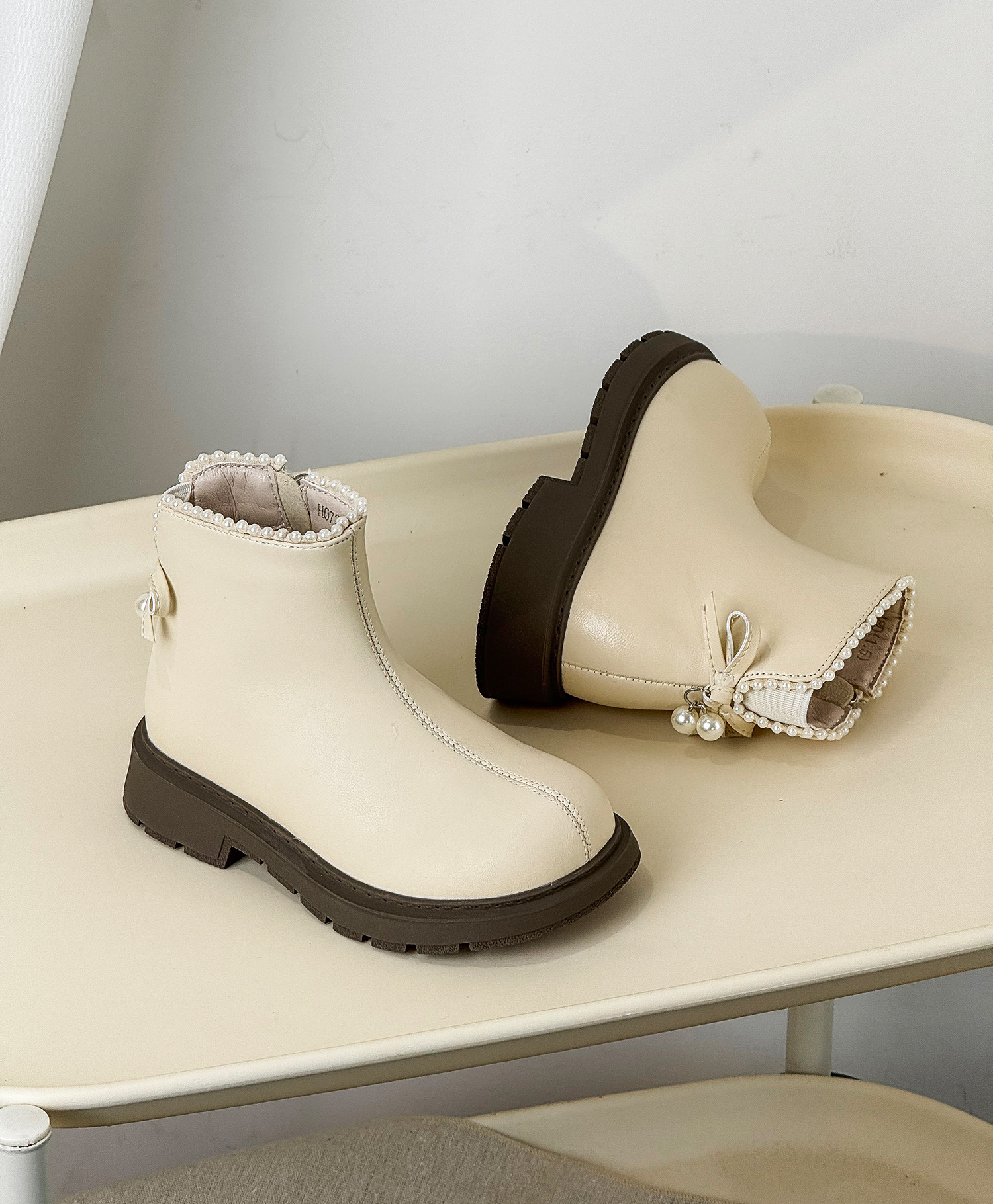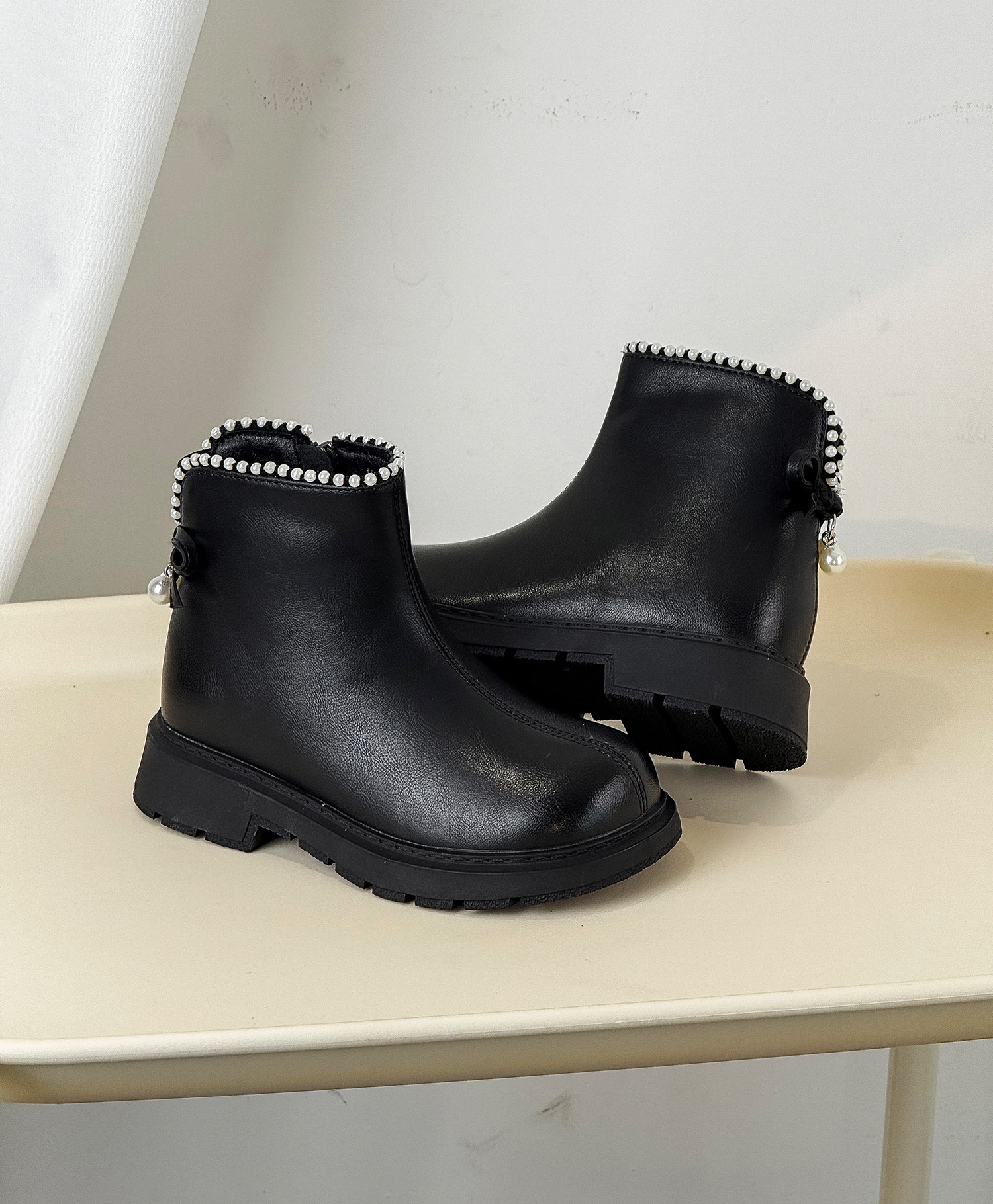 2025年秋季新款儿童靴子韩版甜美珍珠短靴软底女童公主靴时尚单靴