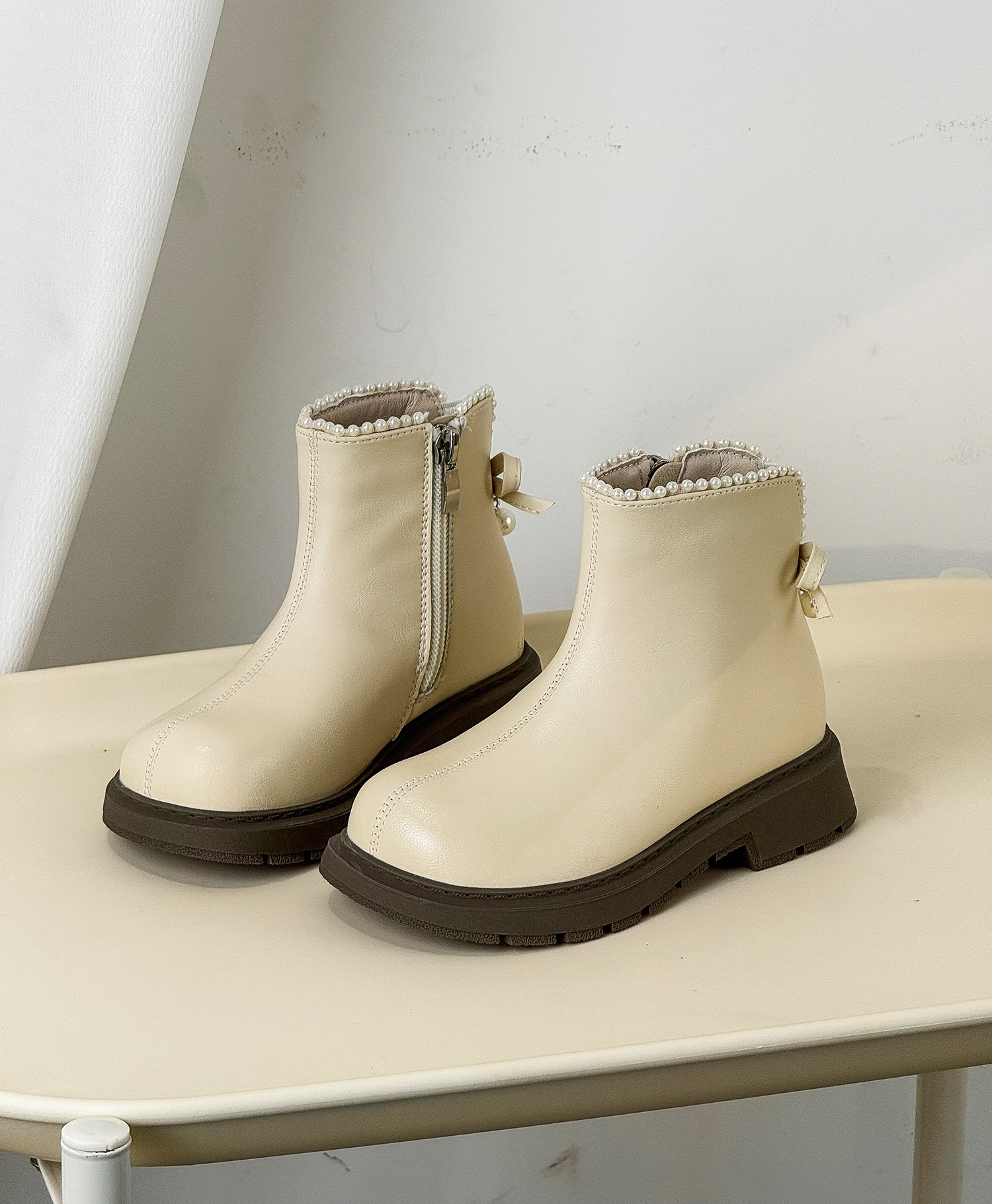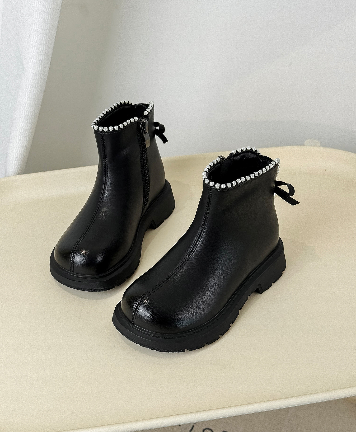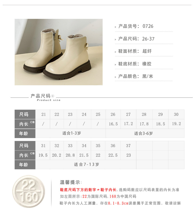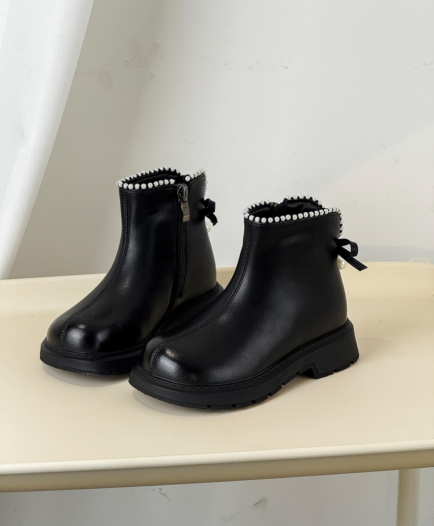 2025年秋季新款儿童马丁靴韩版珍珠蝴蝶结公主靴时尚皮靴