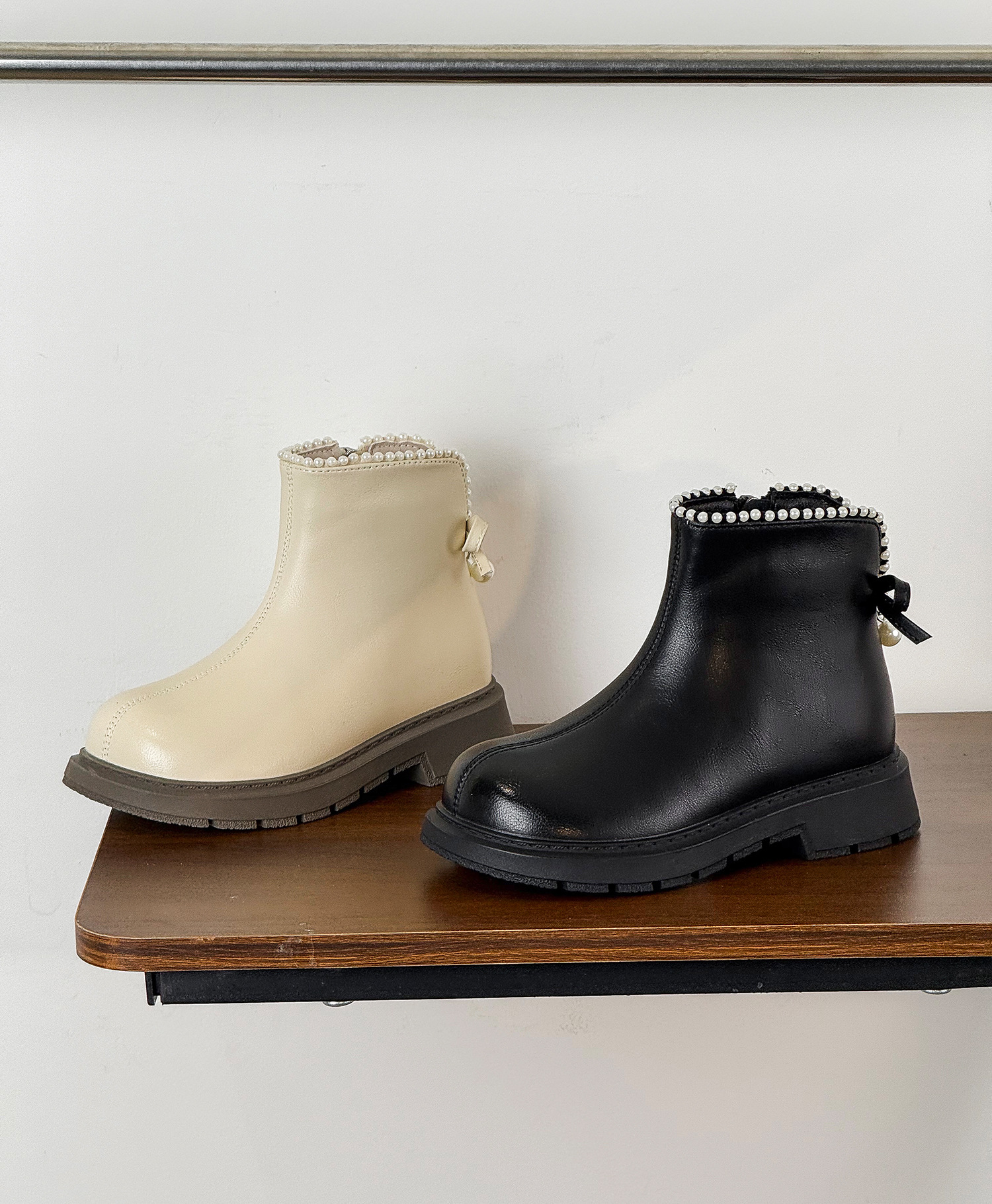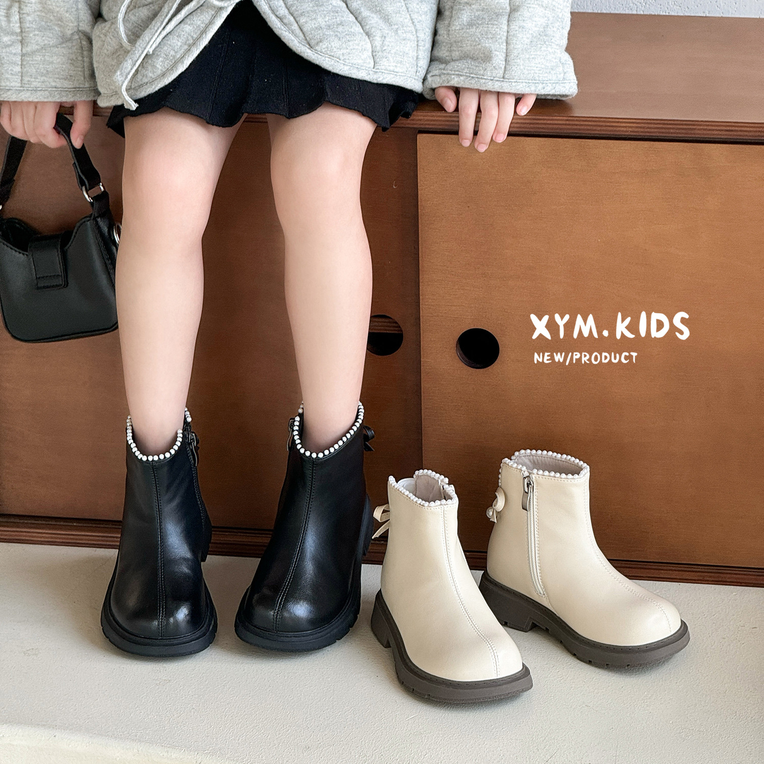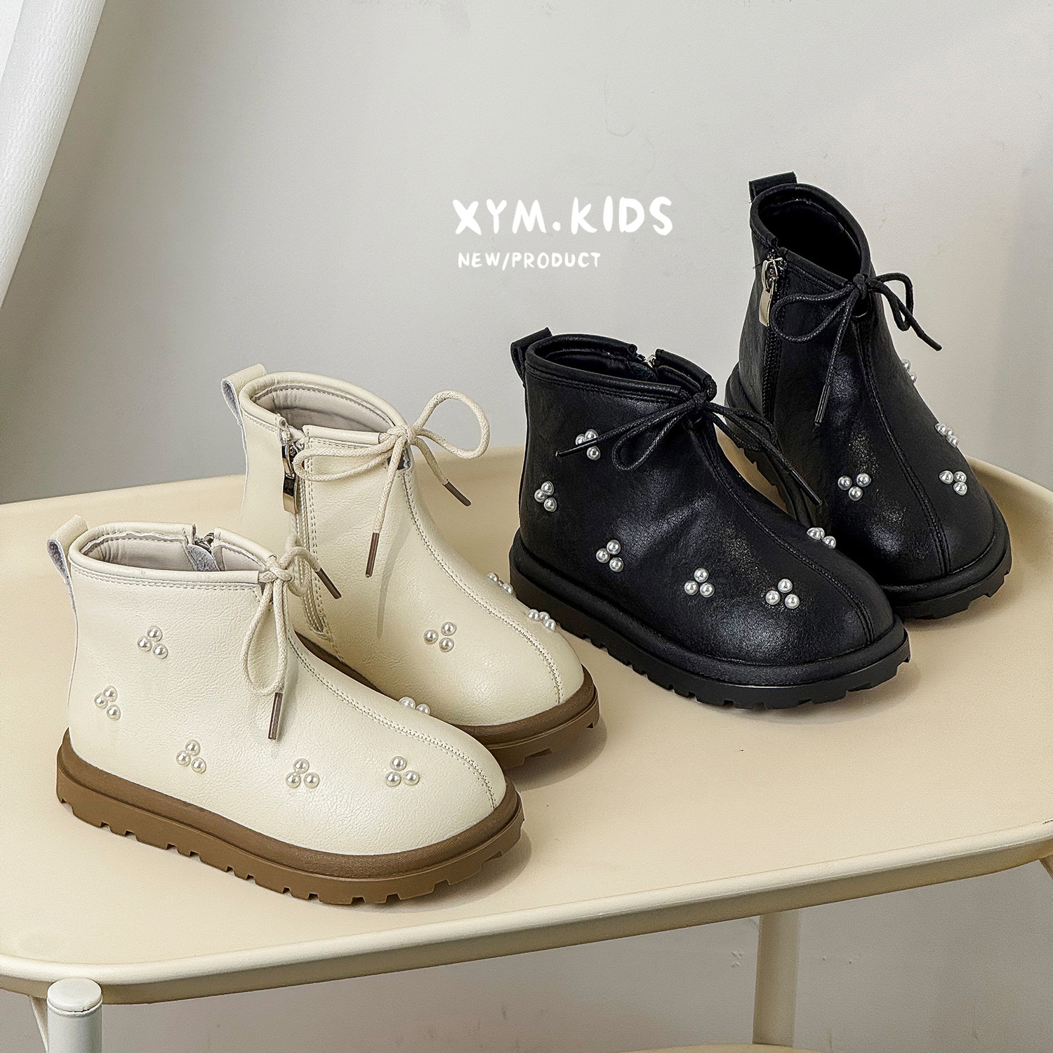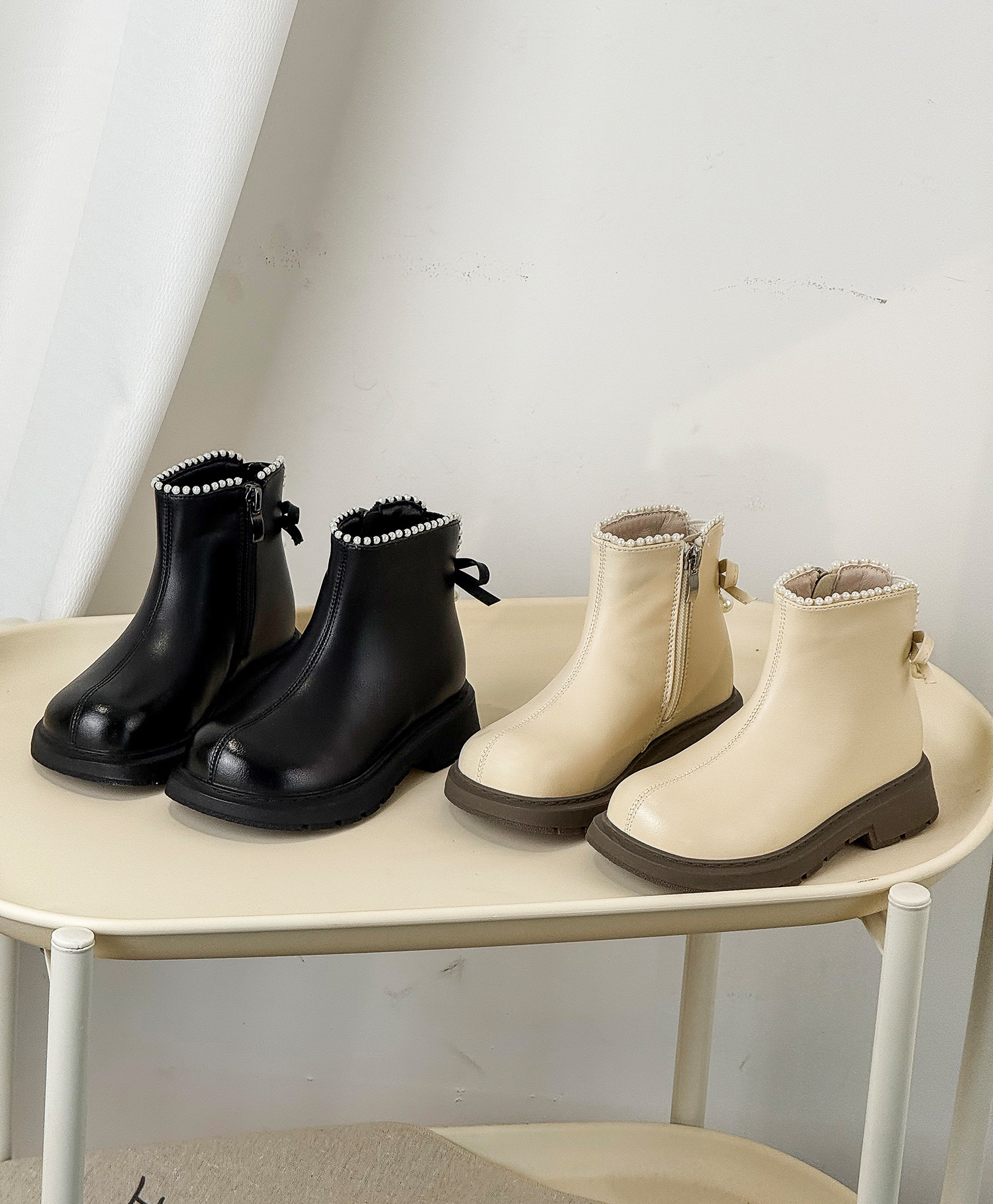 2025年秋季新款儿童马丁靴韩版珍珠蝴蝶结公主靴时尚皮靴