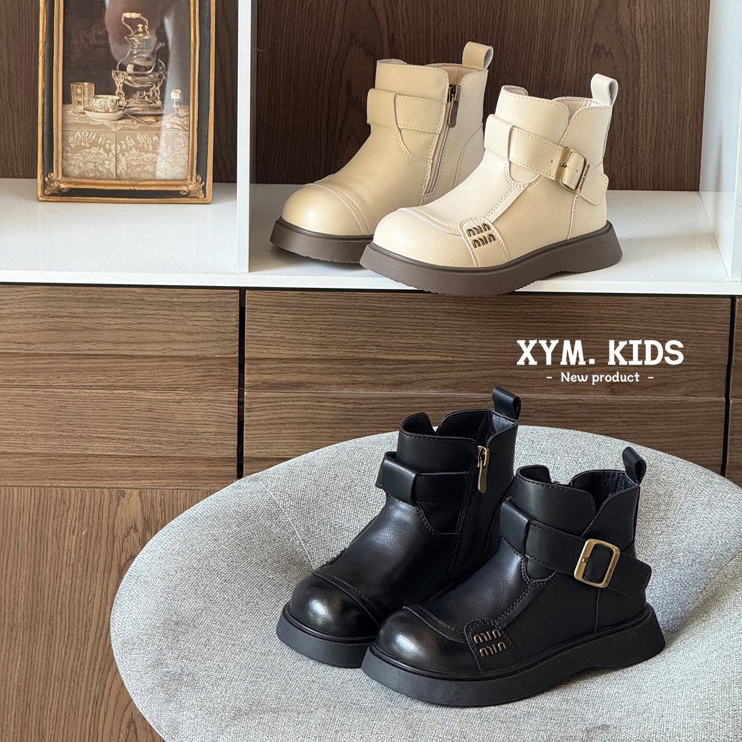 童鞋2025年秋冬季新款儿童马丁靴时尚皮扣英伦风女童靴子字母短靴