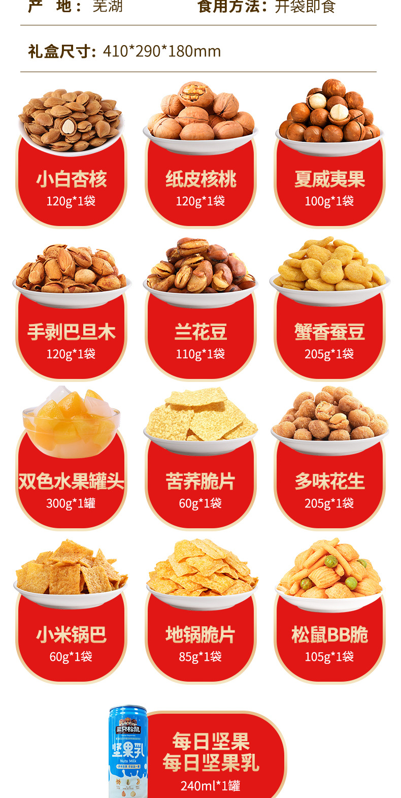 【三只松鼠_坚果大礼包顺悦礼1160g/10袋】年货节礼盒零食品每日