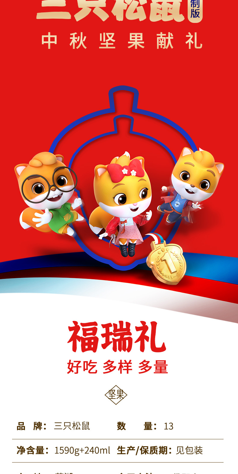 【三只松鼠_福瑞礼坚果大礼包1830g/13袋】每日坚果零食礼盒送礼