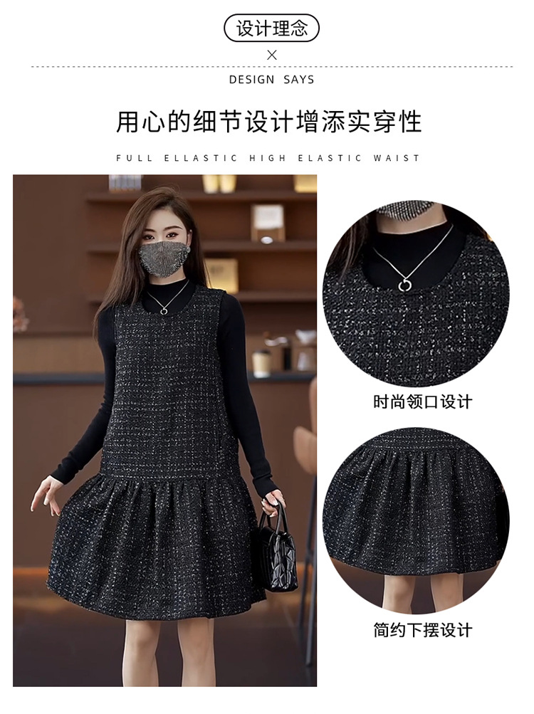 秋冬季新款大码女装背心裙时尚微胖女孩中长款圆领无袖连衣裙