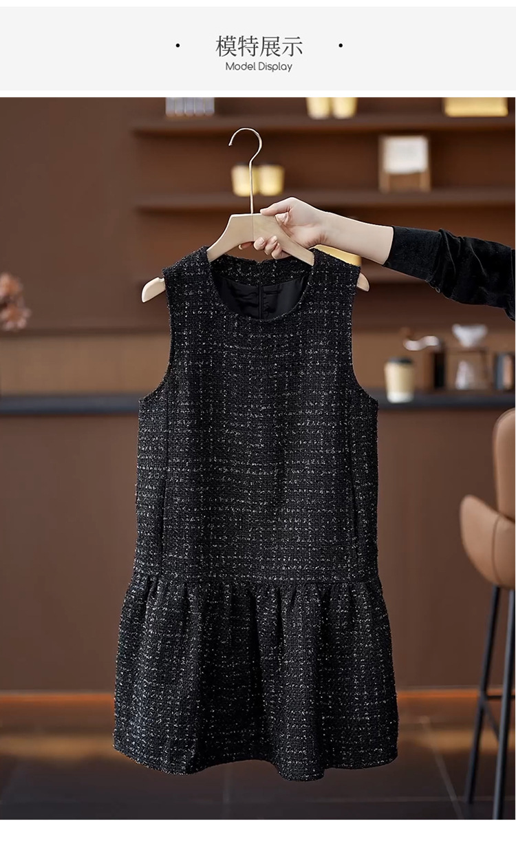 9217秋冬季新品无袖粗花呢小香风气质背心裙女宽松显瘦拉链短款连