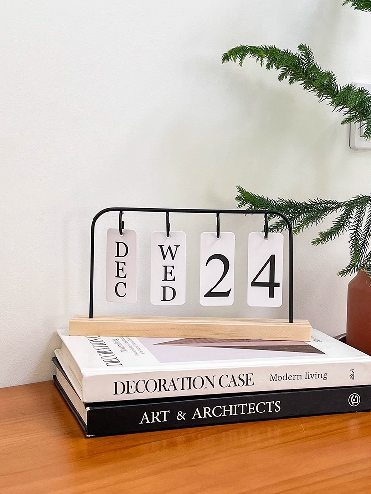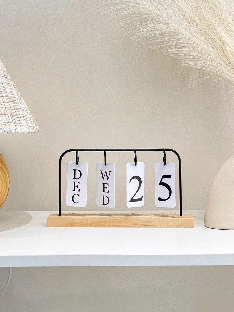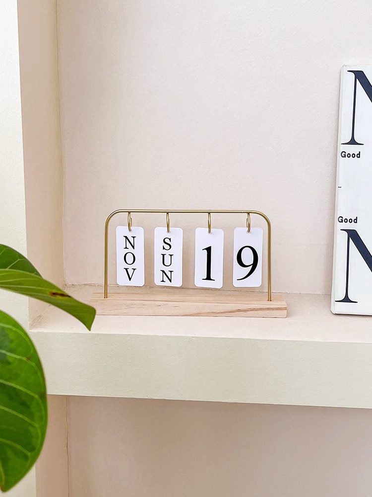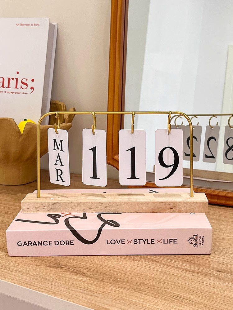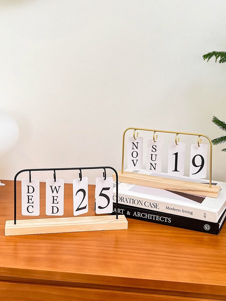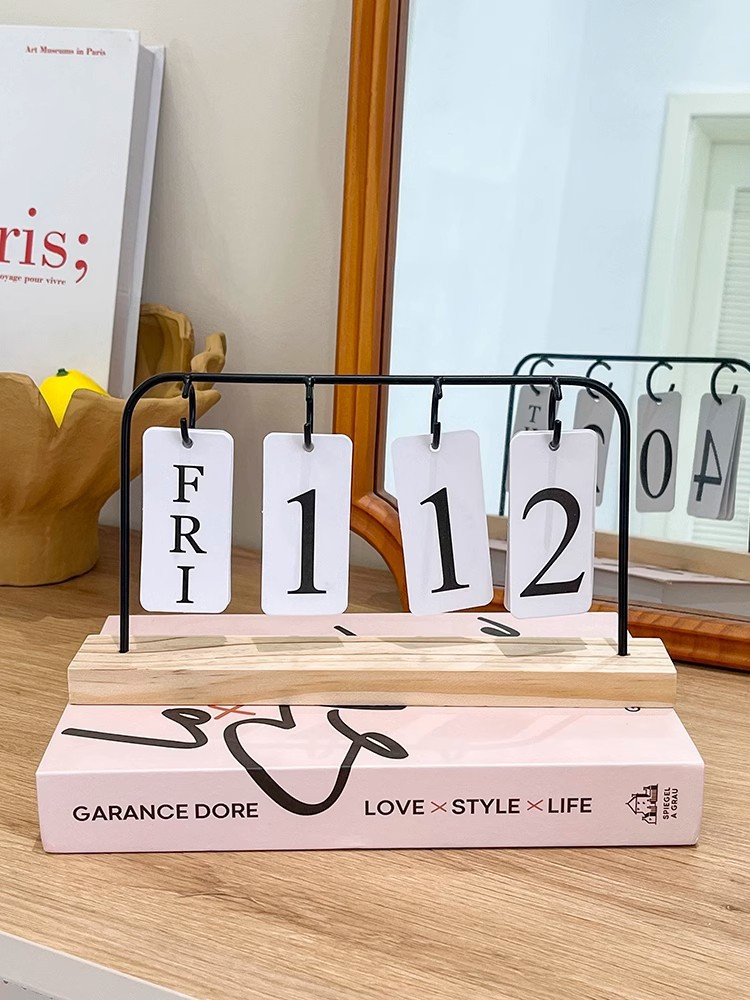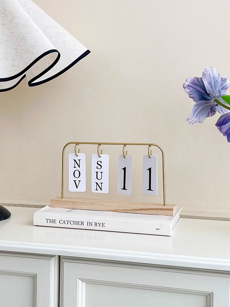北欧风轻奢木质翻页日历台历摆件客厅玄关办公室桌面酒柜装饰品