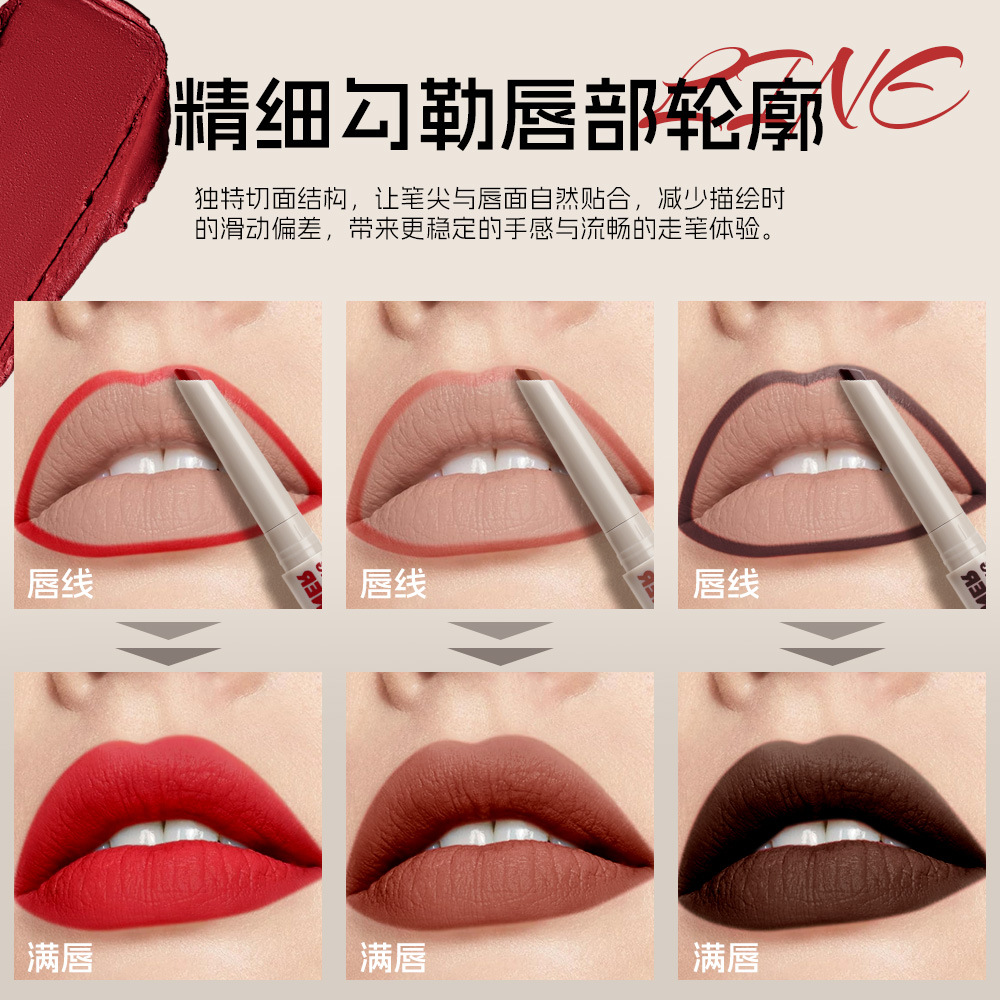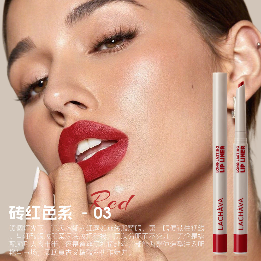 跨境新款LACHAVA丝绒哑光唇线笔10色防水自然持久口红眼线笔现货