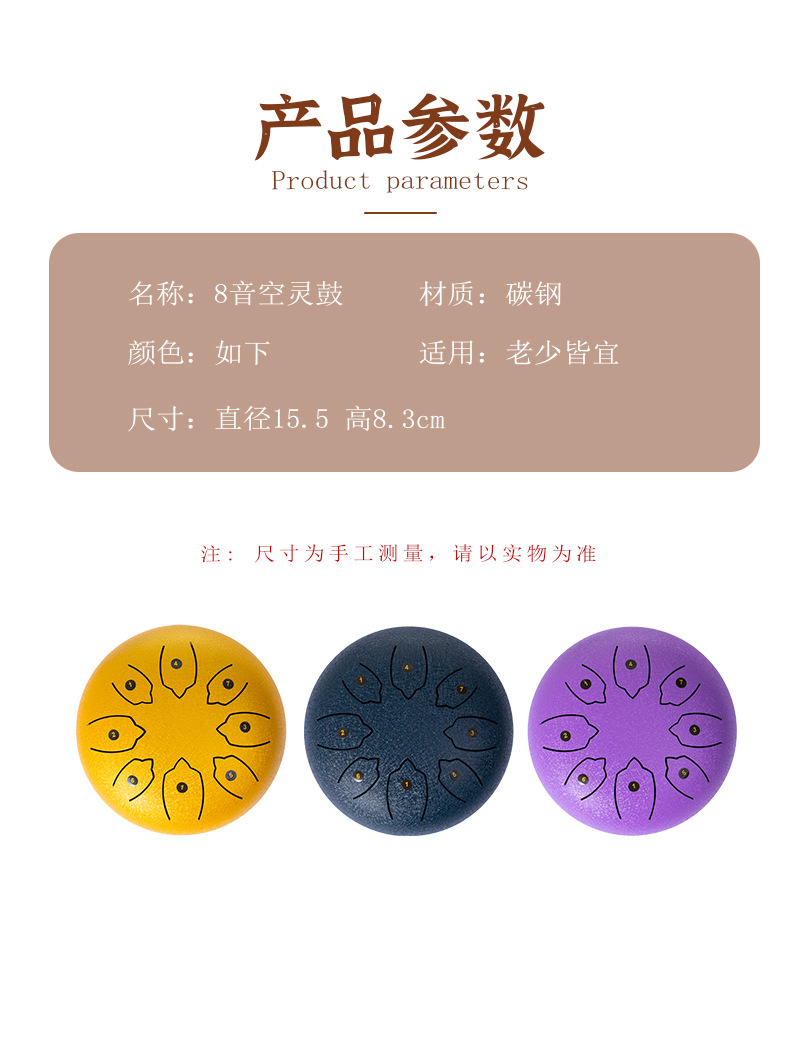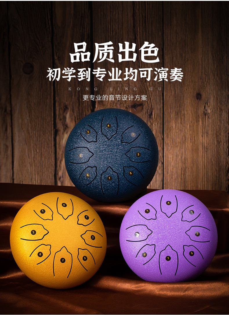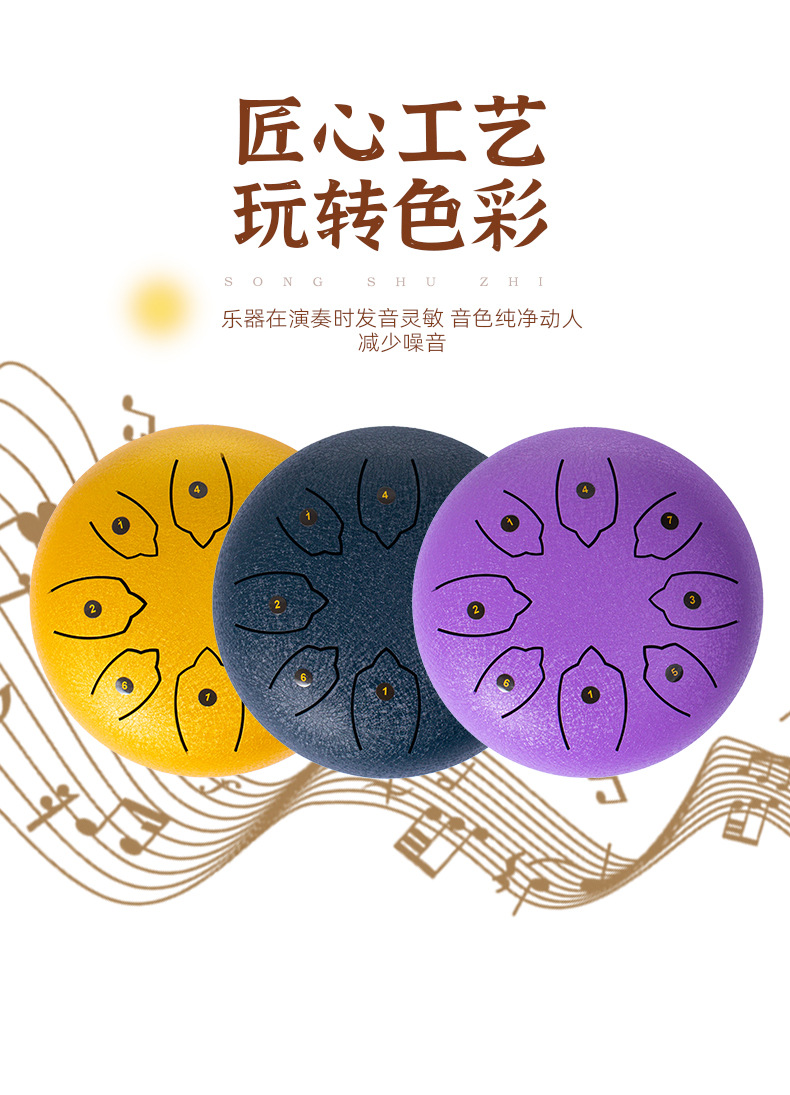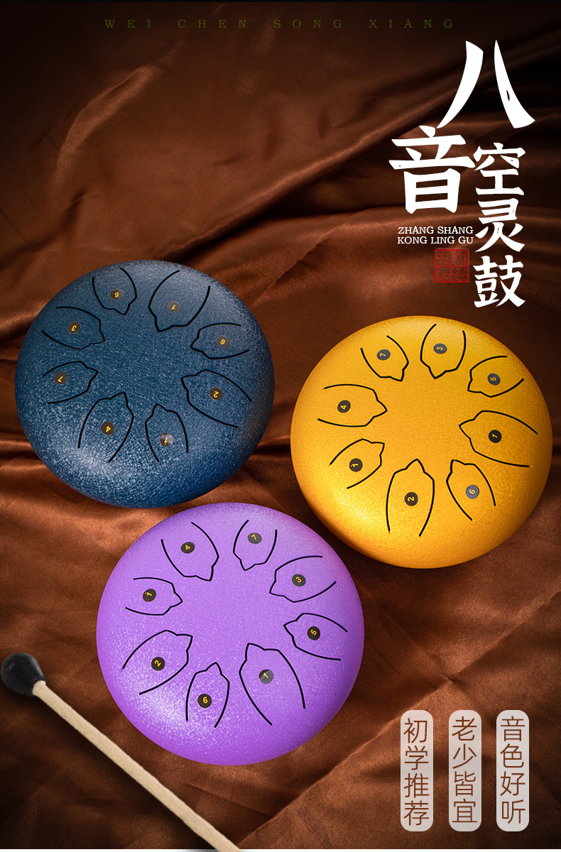 产品配件:鼓槌、教程(中文或英文)、指套、音贴、束口袋、鼓槌支架