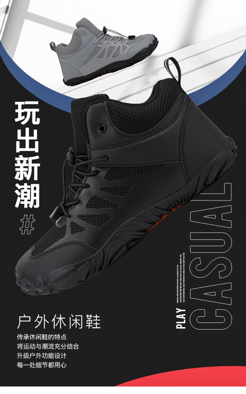 厂家春季新款户外透气五指高帮鞋男鞋休闲鞋轻便运动登山鞋健步鞋
