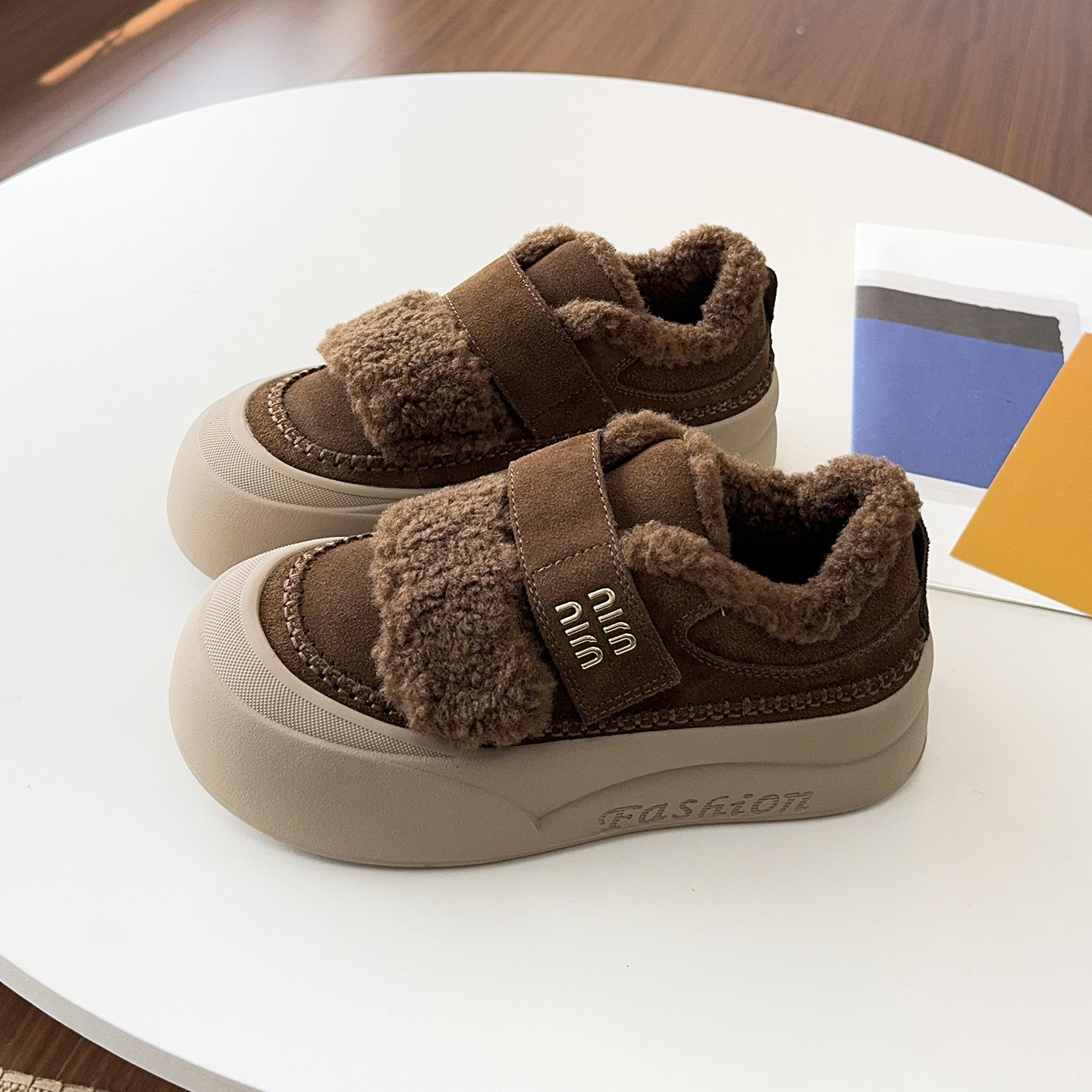 首谷2025新款冬季加绒保暖棉鞋女厚底魔术贴羊羔毛外穿增高休闲鞋