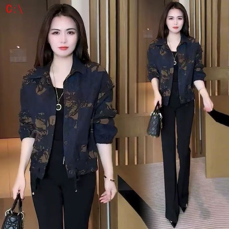 一件代发气质显瘦印花短外套女2025秋季新款宽松减龄百搭长袖上衣