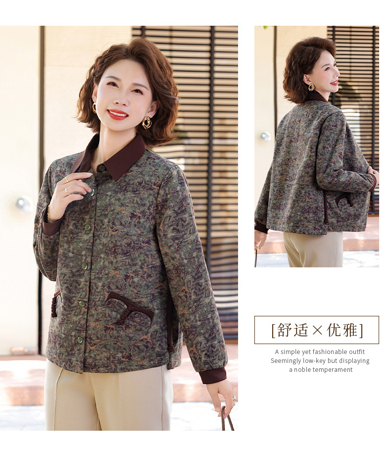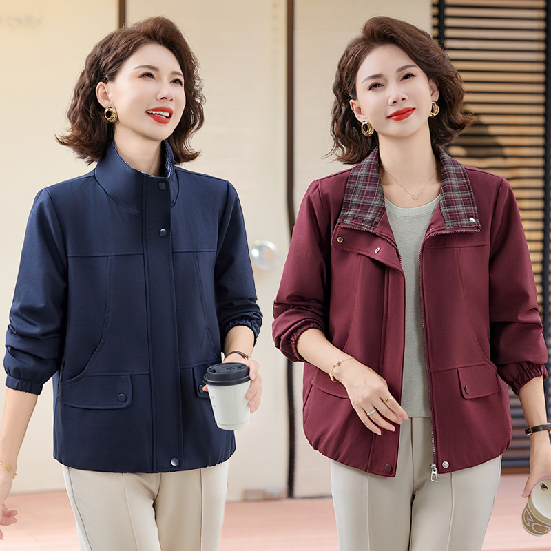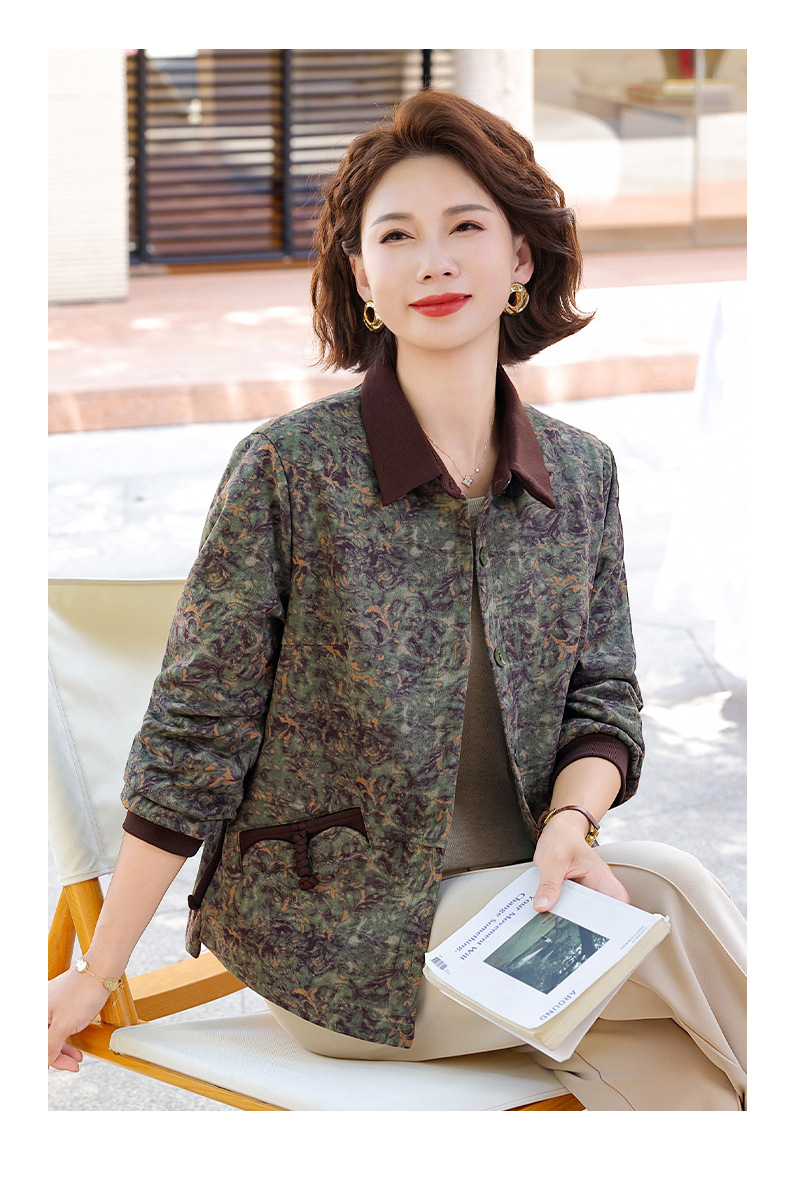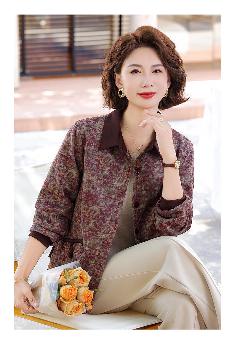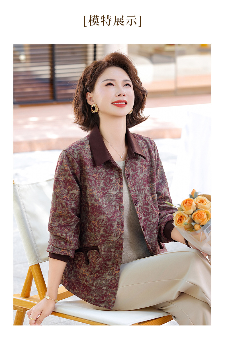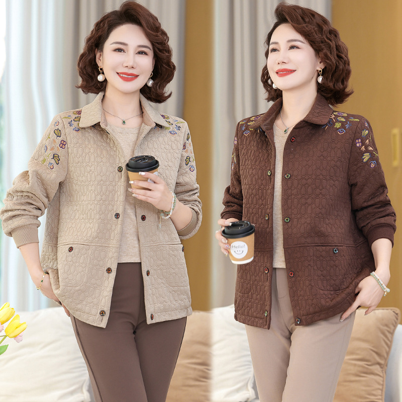 中高年婦人服春秋ファッション気質刺繍襟付き上着中年お母さん春服洋風カジュアルコート