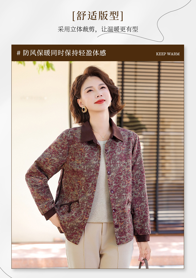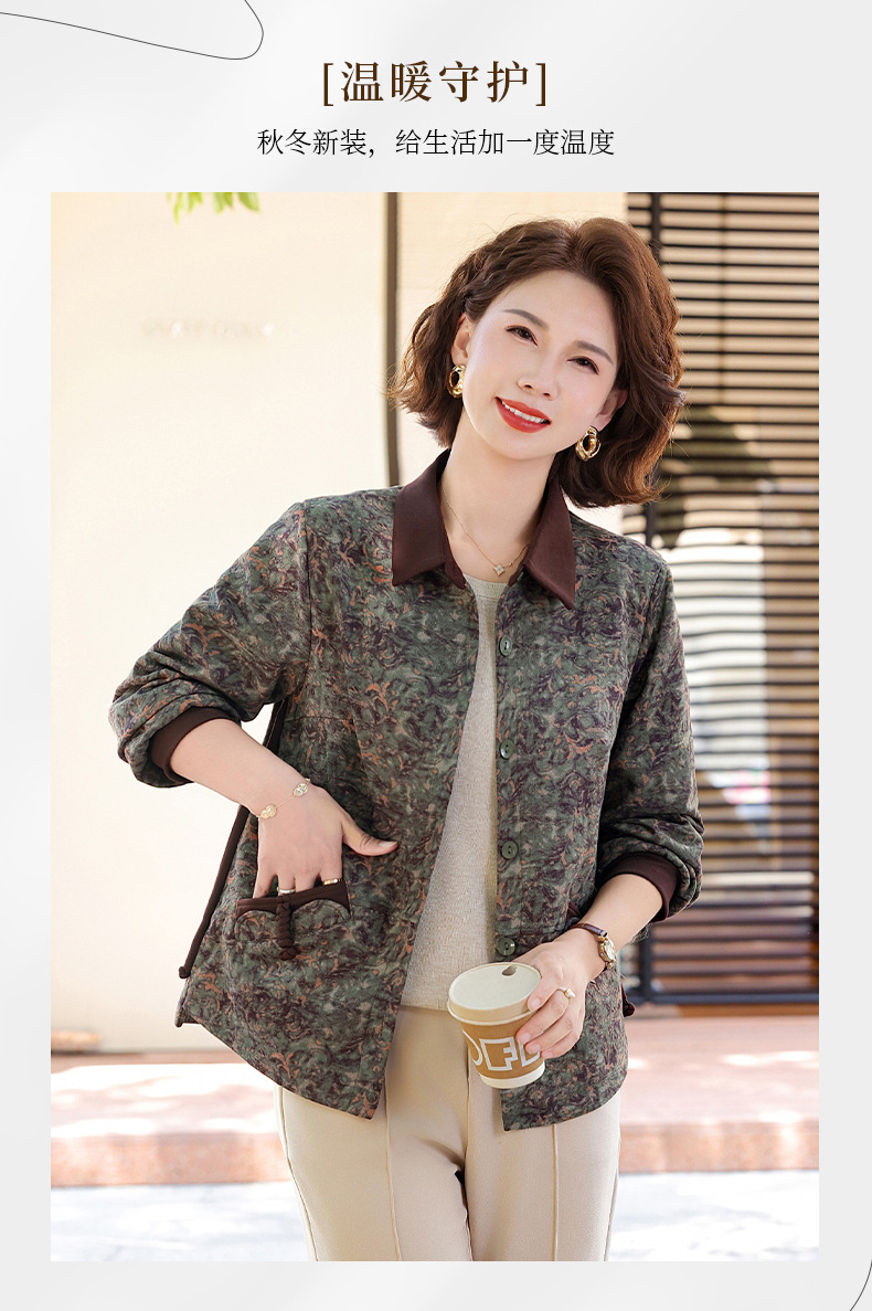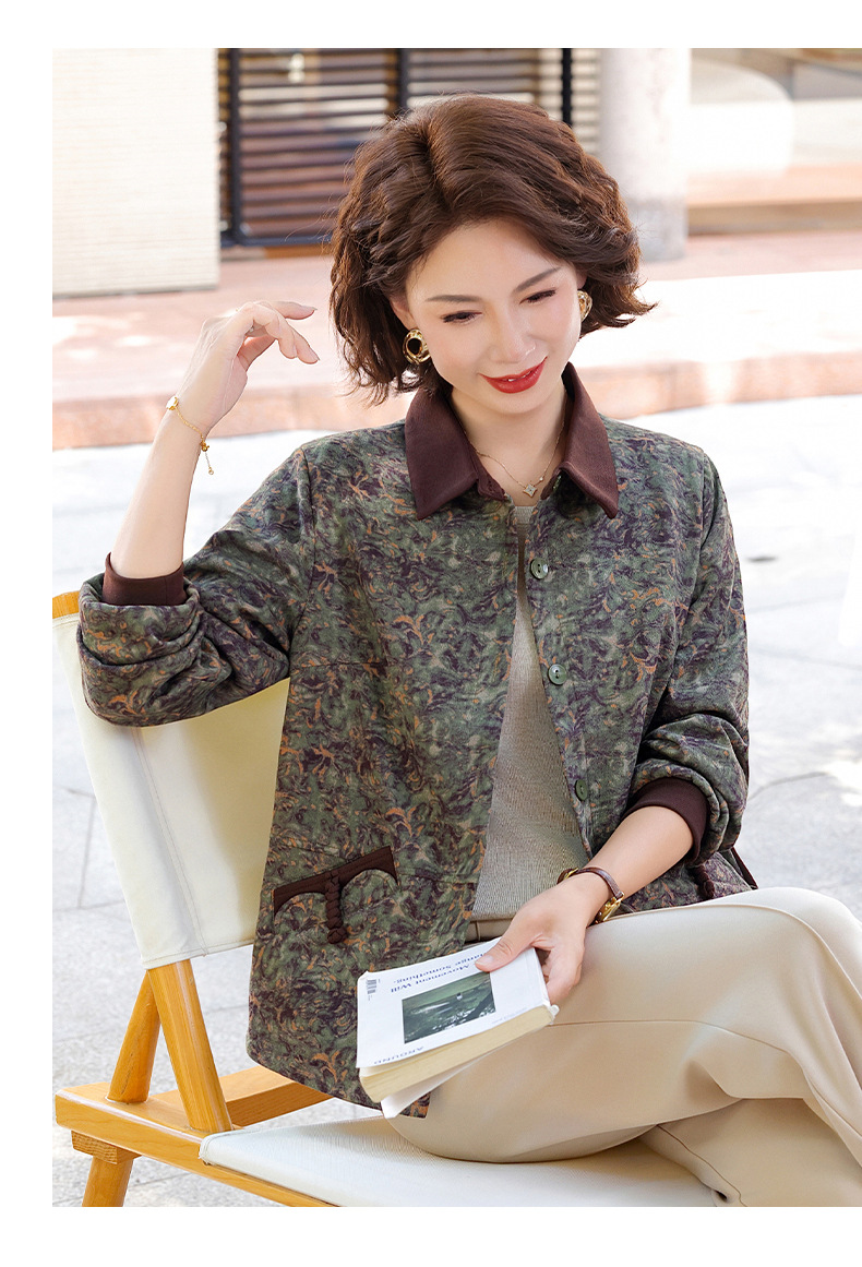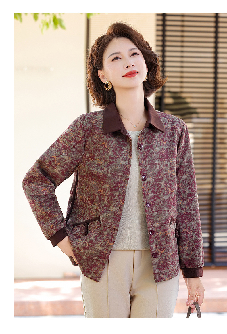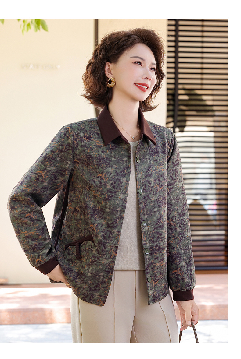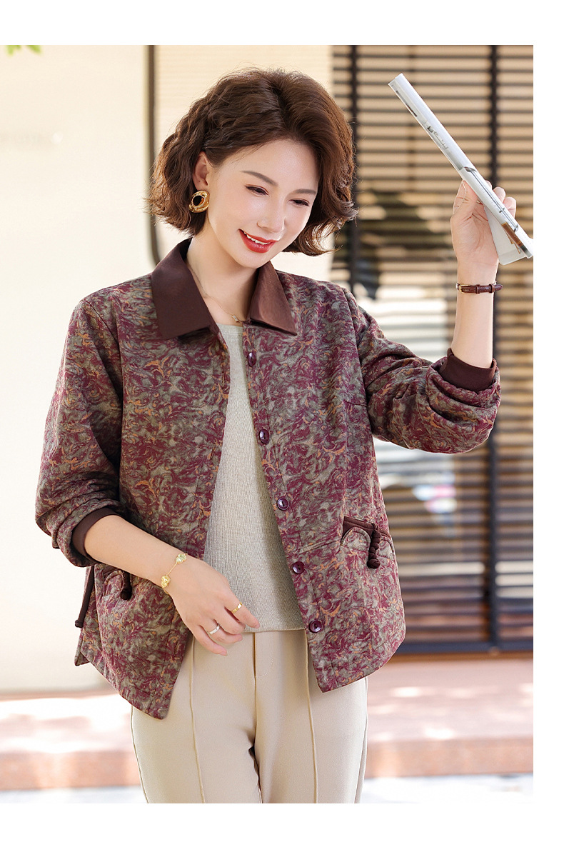 中高年婦人服春秋ファッション気質刺繍襟付き上着中年お母さん春服洋風カジュアルコート