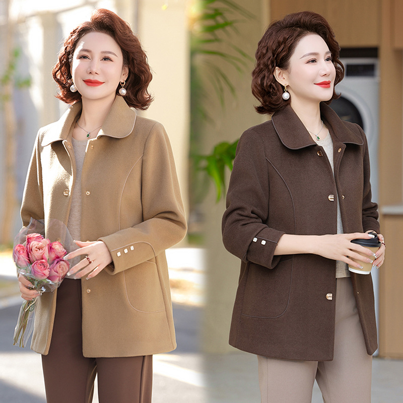 妈妈秋装外套洋气翻领上衣50多岁中年女装双面呢大衣短款毛呢外套