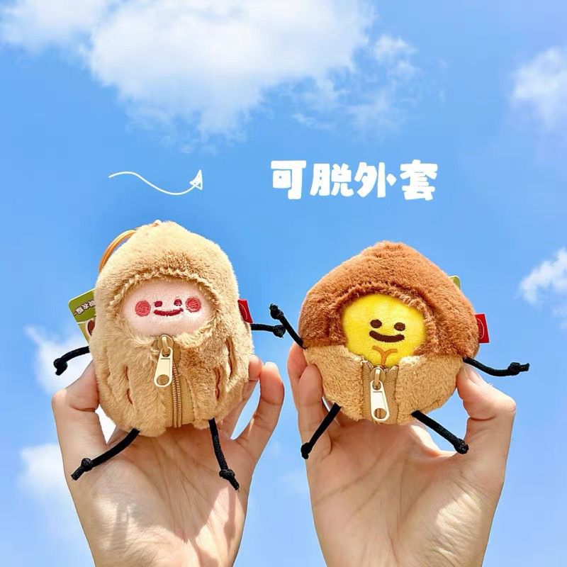 新しい取り外し可能なコートピーナッツと栗のぬいぐるみペンダントかわいい人形スクールバッグバッグ車のキーホルダーペンダントカップル