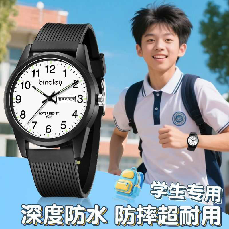 2025新款公务员考试静音初高中生男士手表女款学生防水石英手表