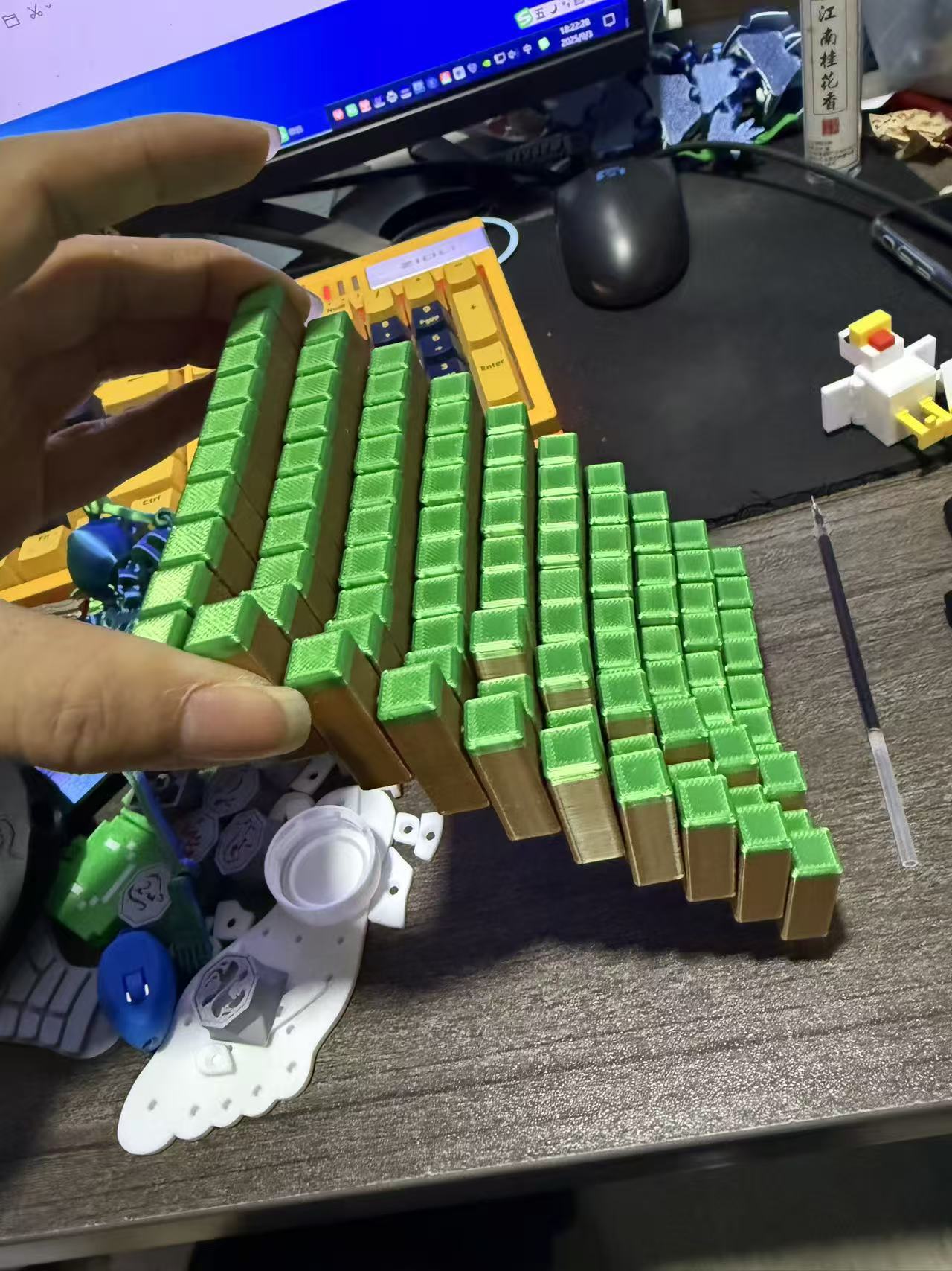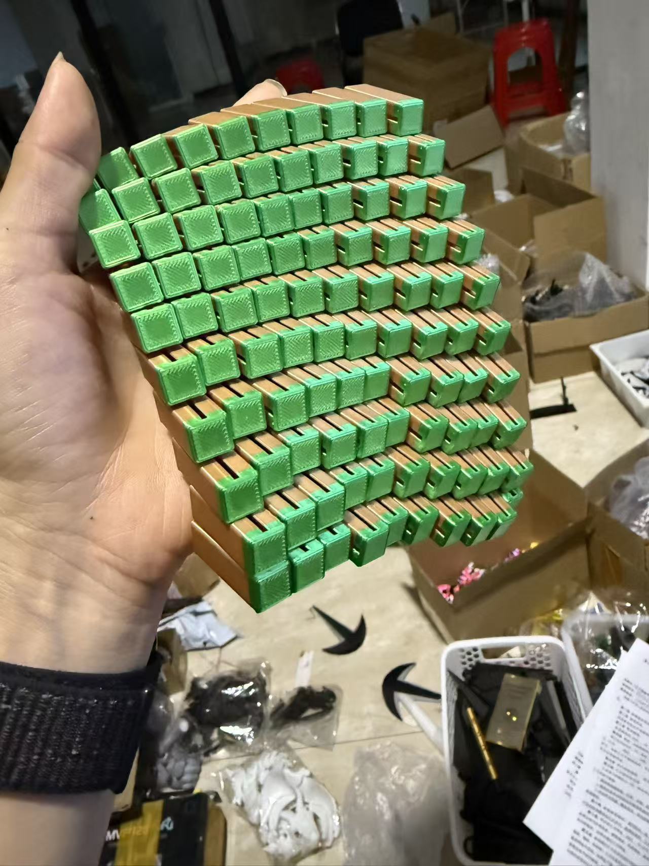 跨境新品3D打印我的世界草地解压玩具可动玩具桌面摆件世界草坪