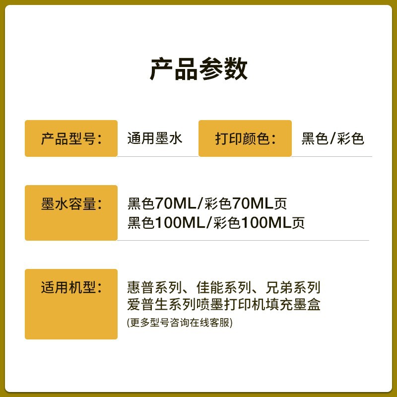 适用品牌型号 惠普、佳能、兄弟、爱普生墨盒墨水